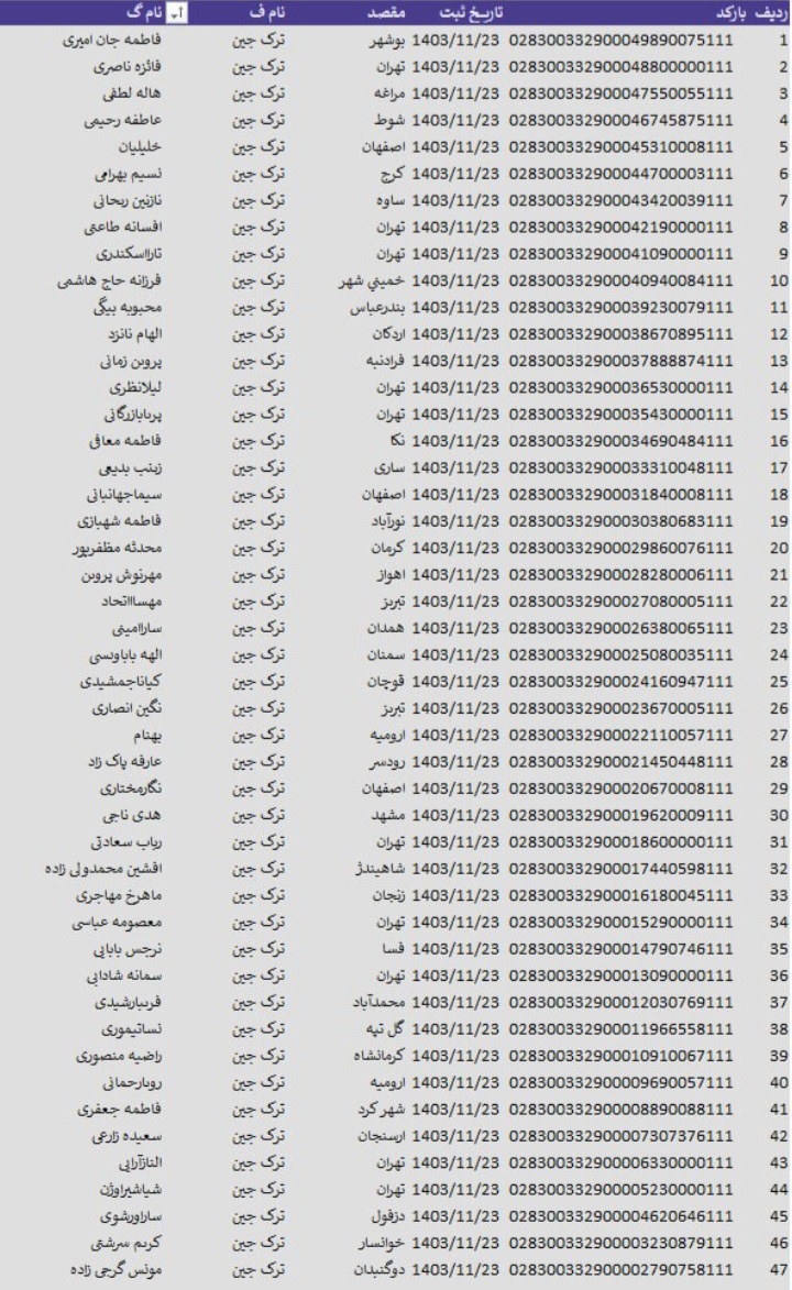 سفارشات ثبتی تا ۲۴ اردیبهشت