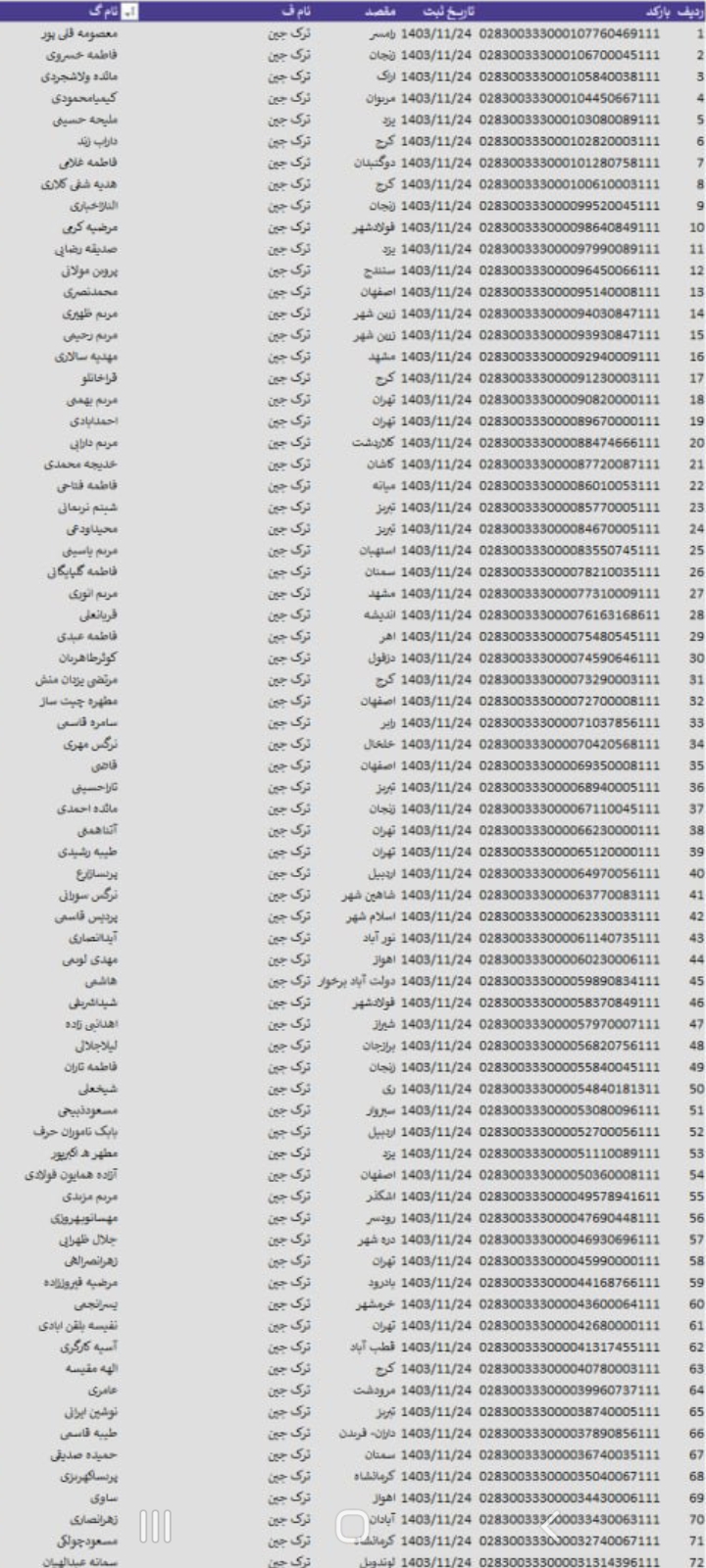 سفارشات ثبتی تا ۱۸ اسفند(سری دوم)