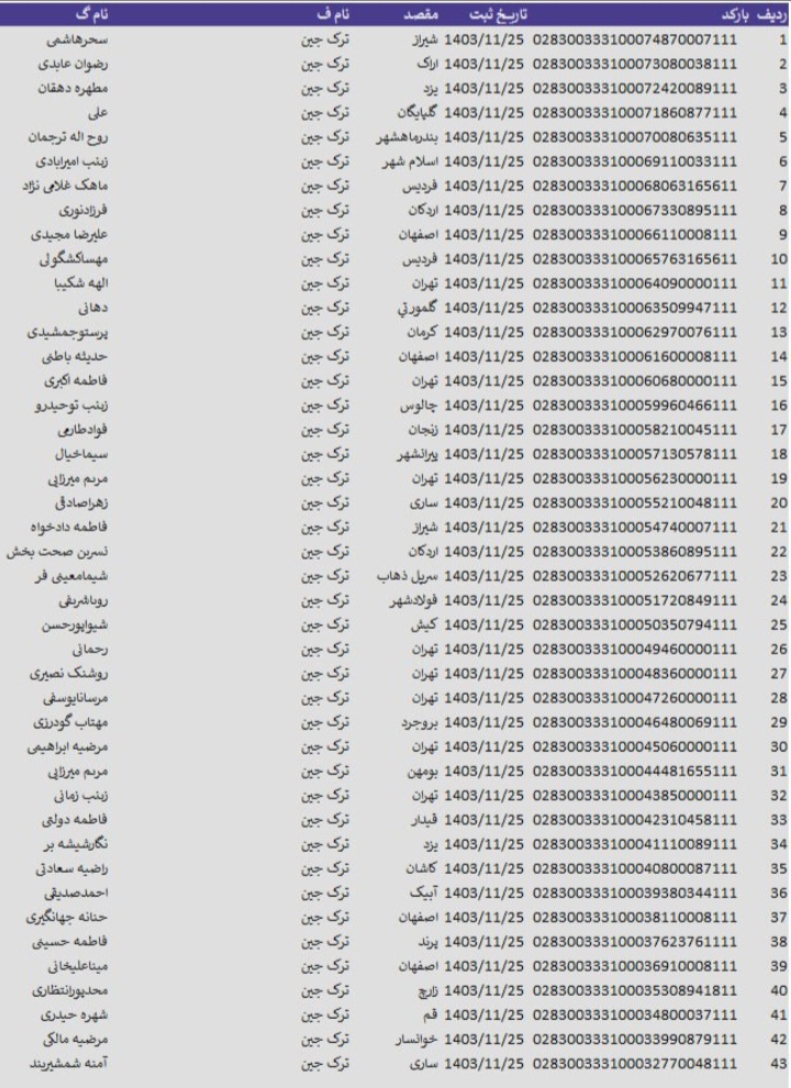 سفارشات ثبتی تا ۱۸ اسفند(سری دوم)