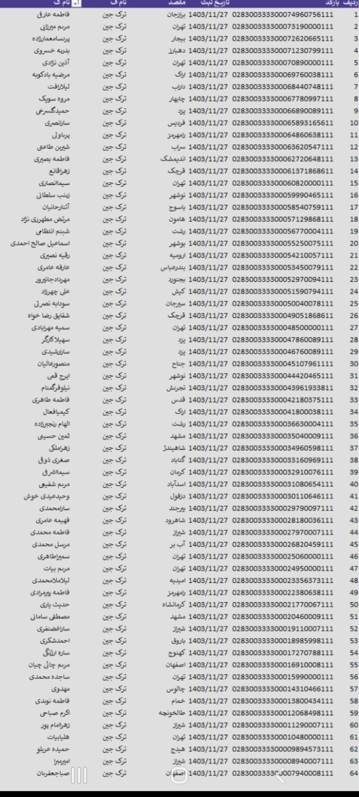 سفارشات ثبتی تا ۳ فروردین