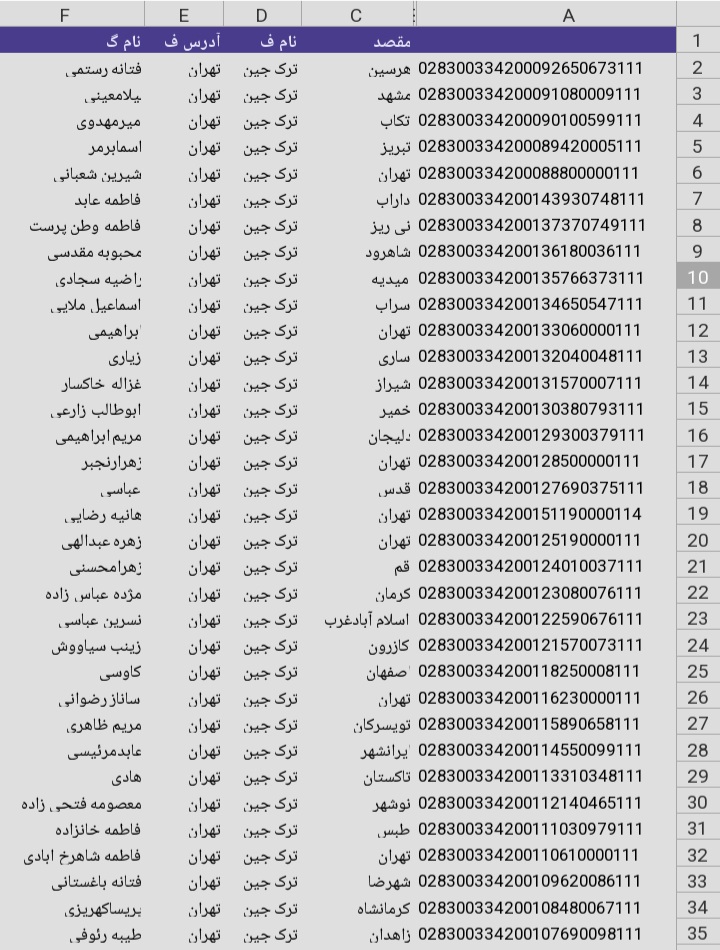 لیست ارسالی های پست