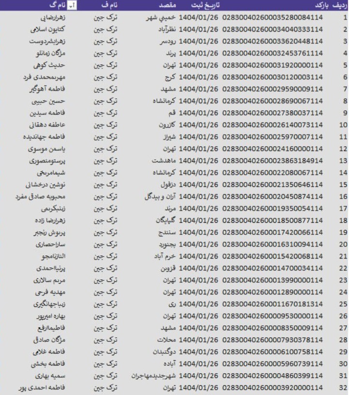 سفارشات ثبتی تا ۱ اردیبهشت
