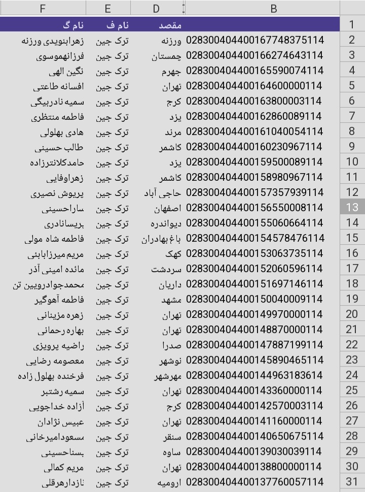 سفارشات ثبتی تا ۱۳ اردیبهشت