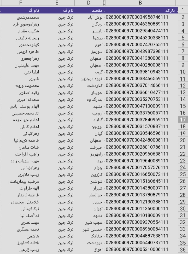 لیست ارسالی های پست