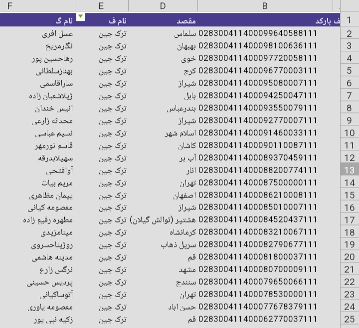 لیست ارسالی های پست