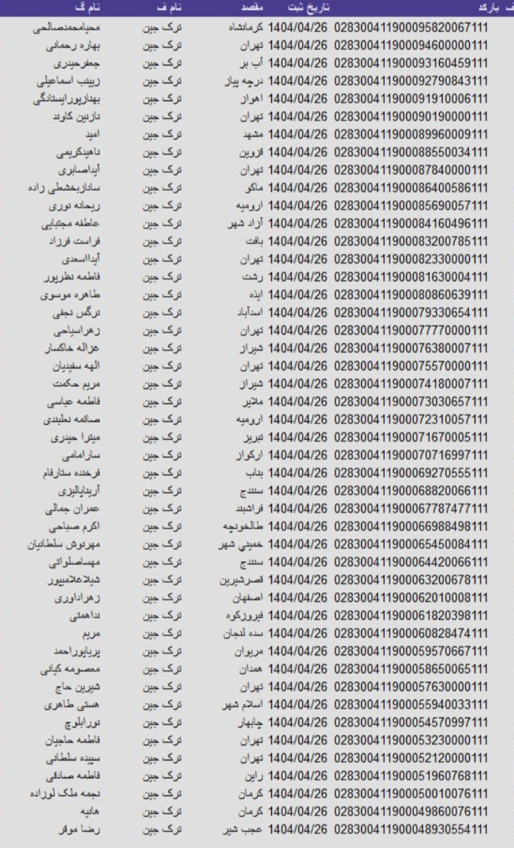 سفارشات ثبتی تا ۲۴ اردیبهشت