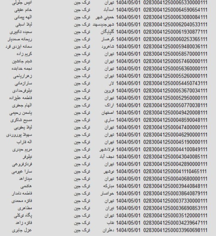 سفارشات ثبتی تا ۲۴ اردیبهشت