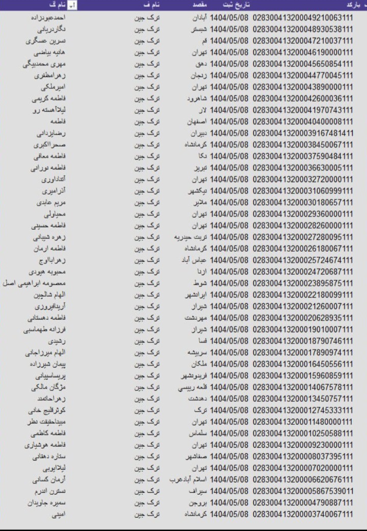 سفارشات ثبتی تا ۲۴ اردیبهشت