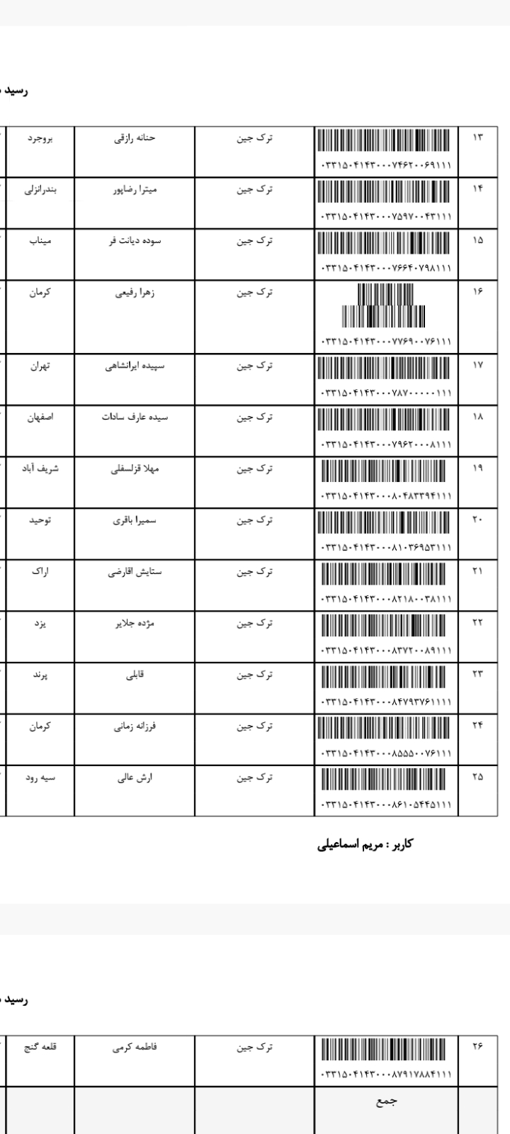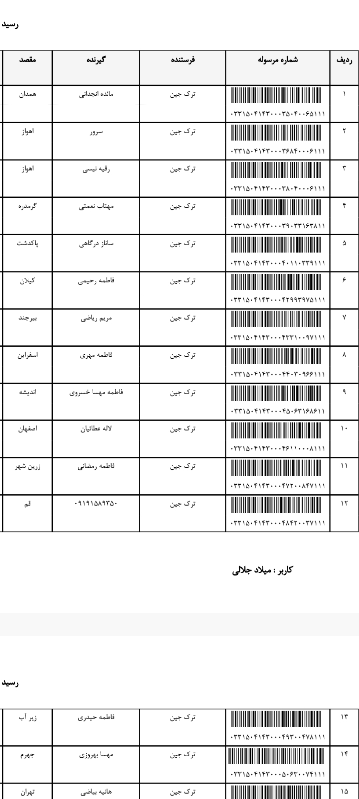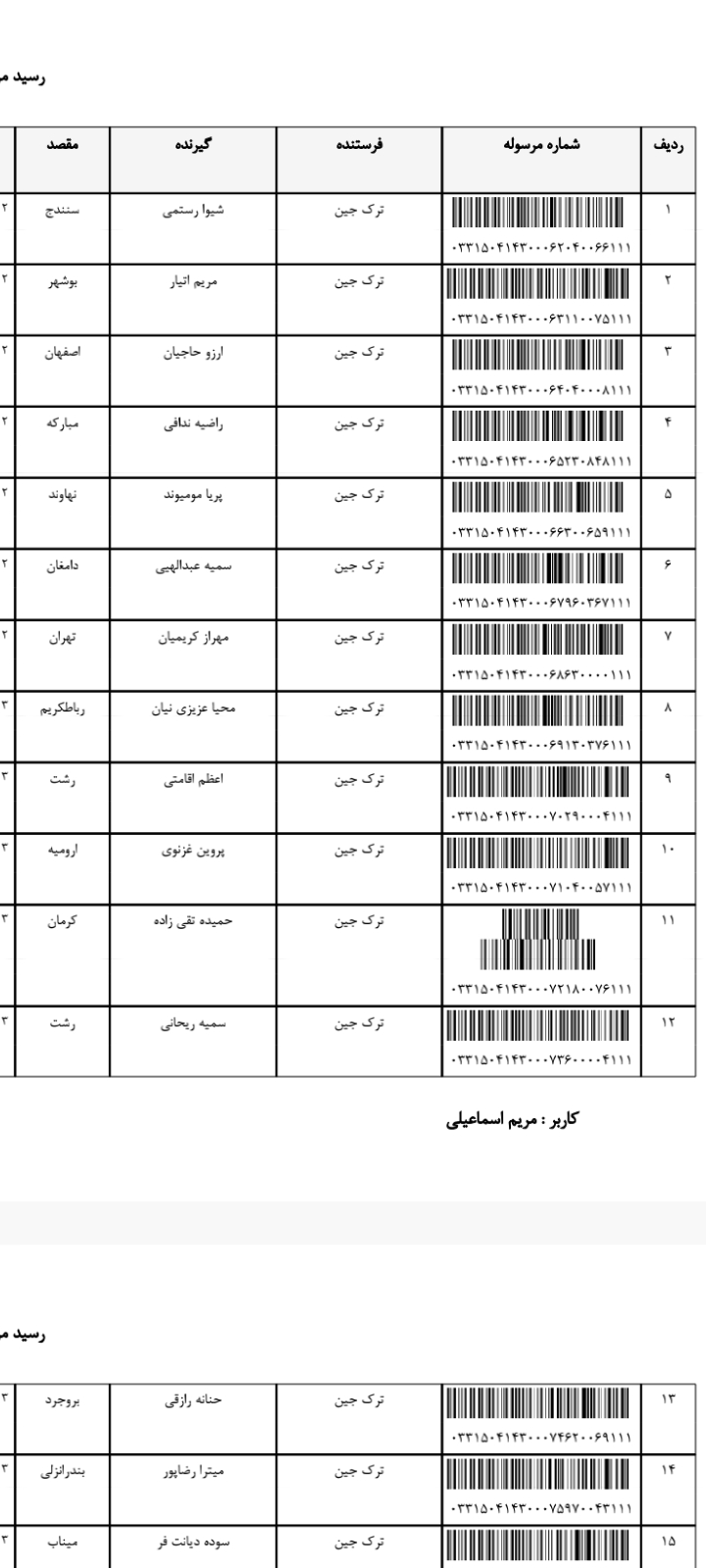 سفارشات ثبتی تا ۱۸ اسفند(سری دوم)