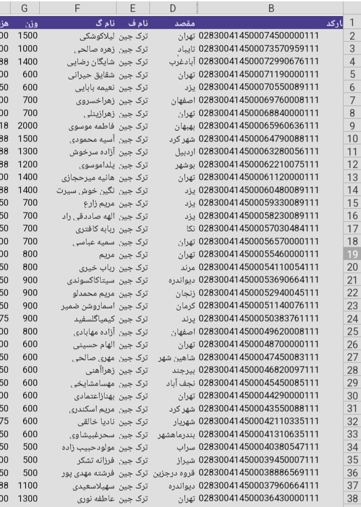 لیست ارسالی های پست