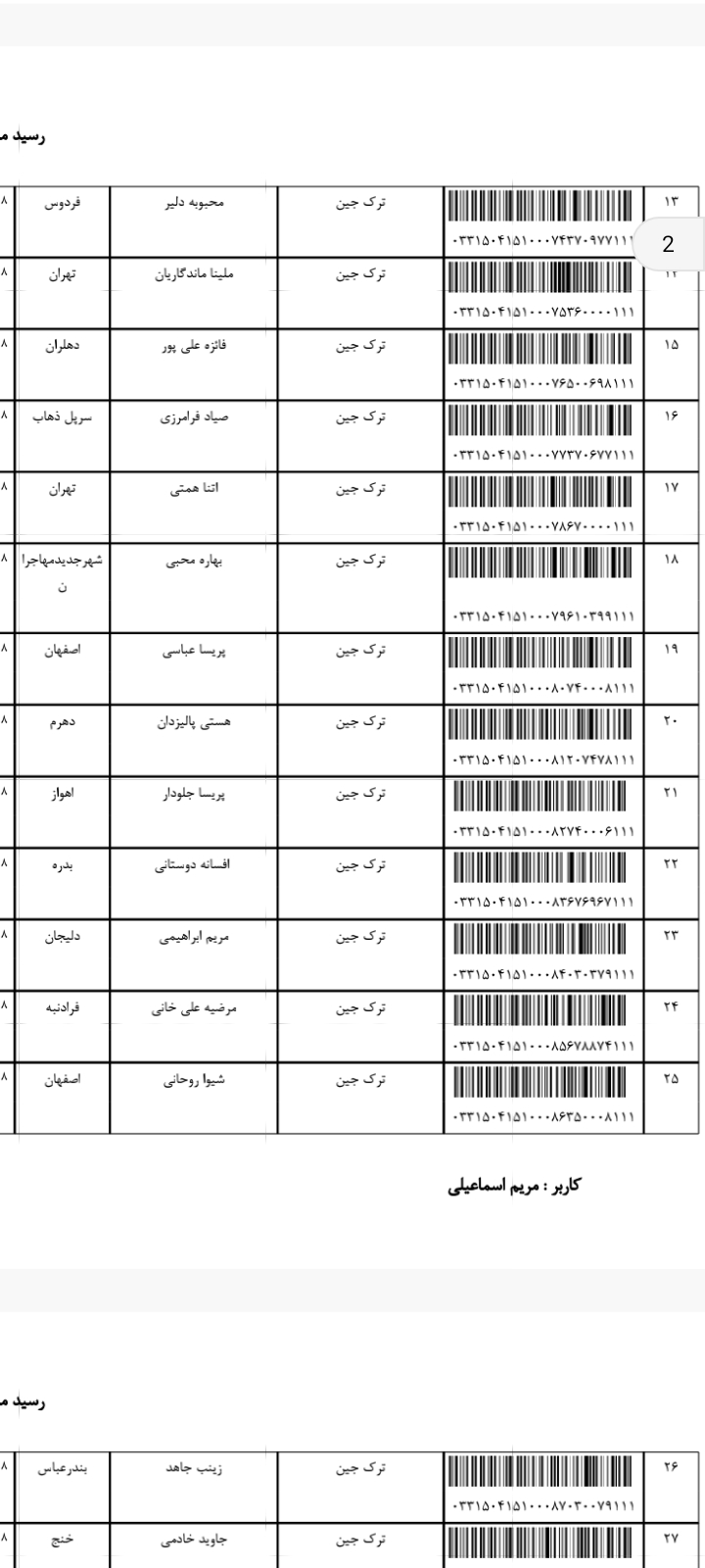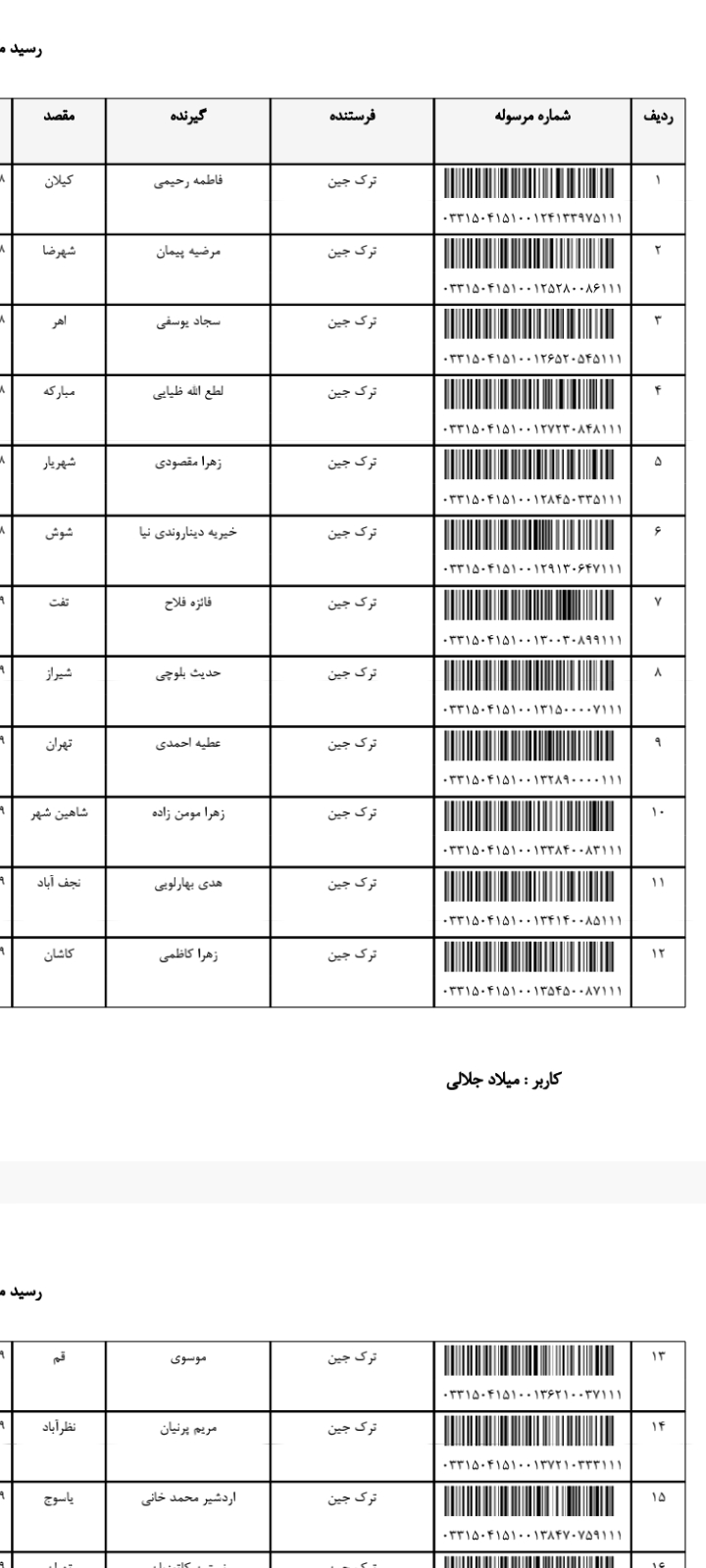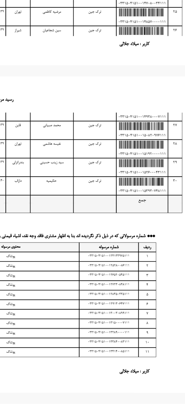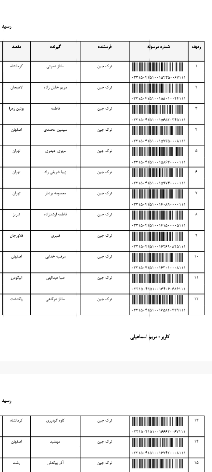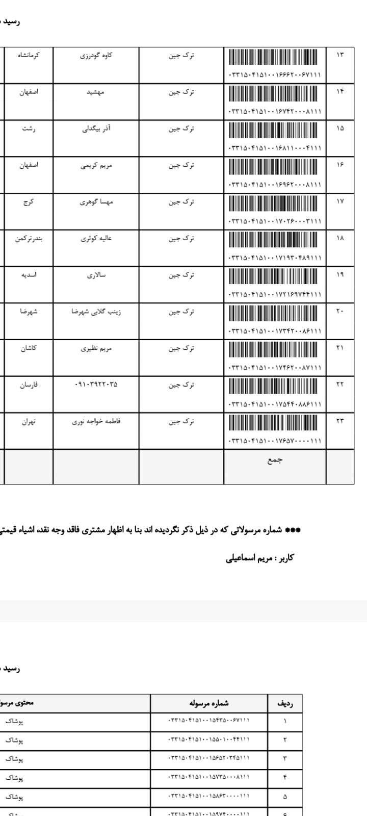 سفارشات ثبتی تا ۱۸ اسفند(سری دوم)