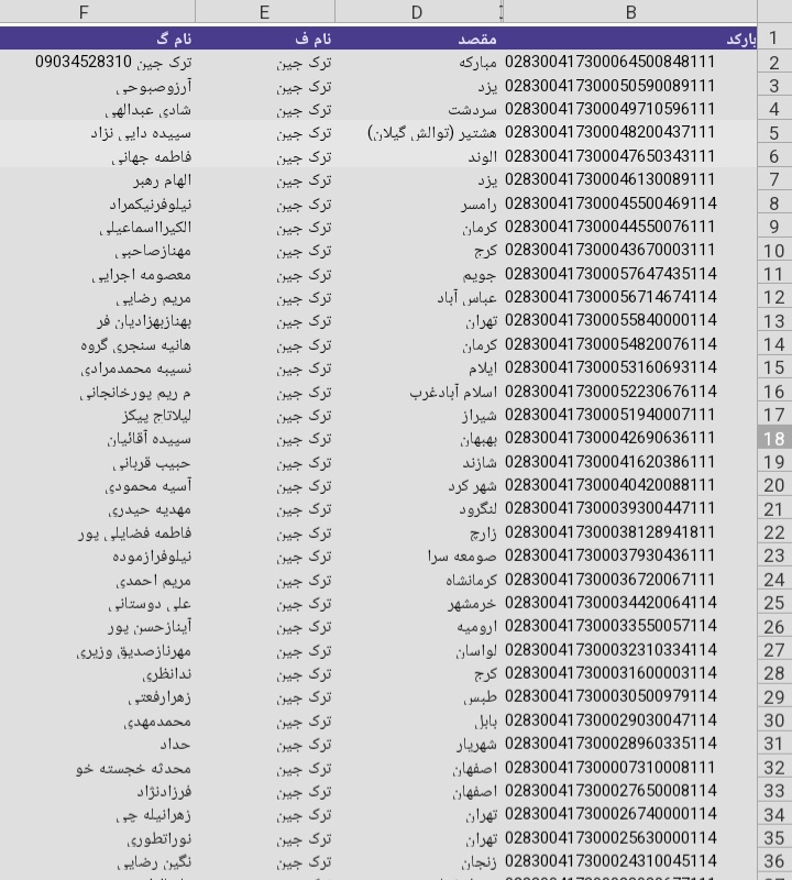 لیست ارسالی های پست
