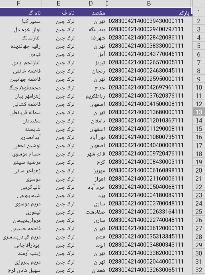 سفارشات ثبتی تا ۳ فروردین