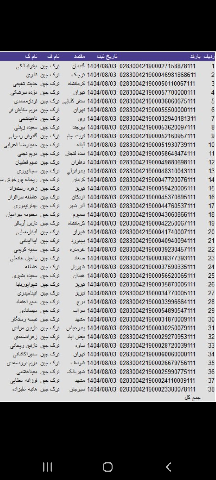 سفارشات ثبتی تا ۳ فروردین