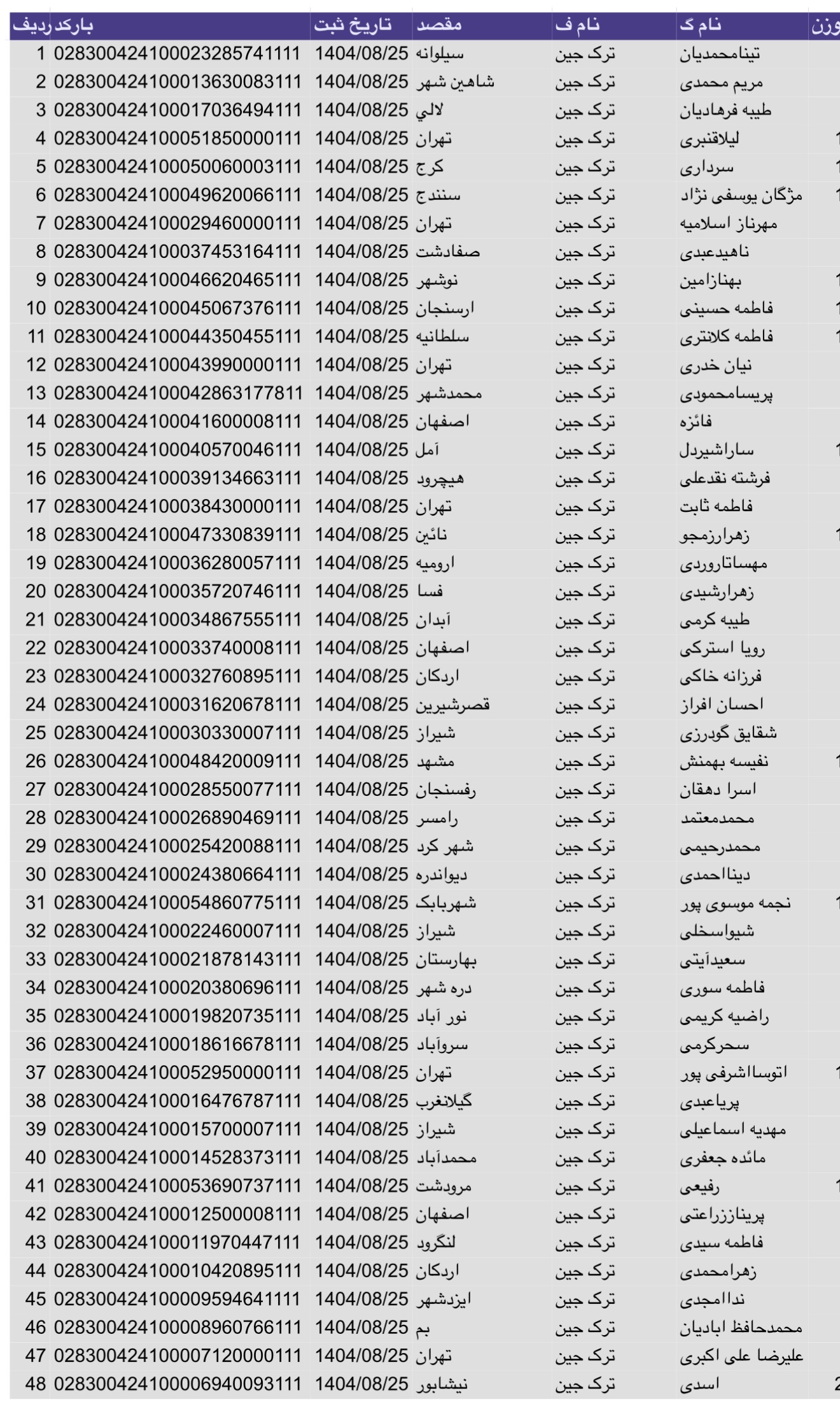 سفارشات ثبتی تا ۱۳ اردیبهشت