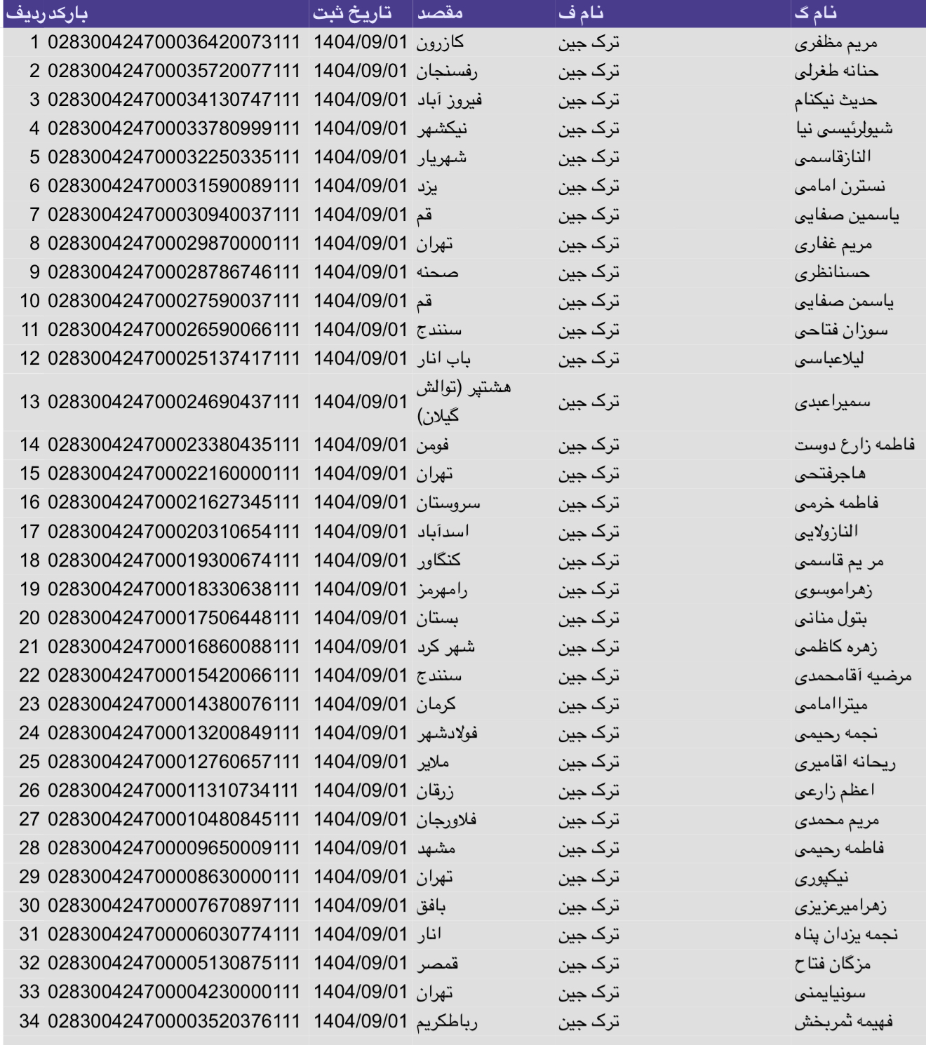 سفارشات ثبتی تا ۲۴ اردیبهشت