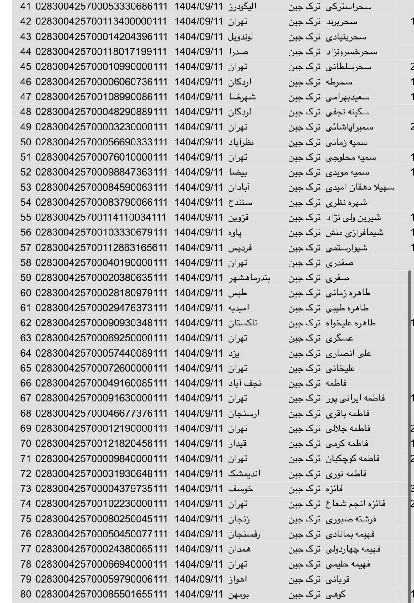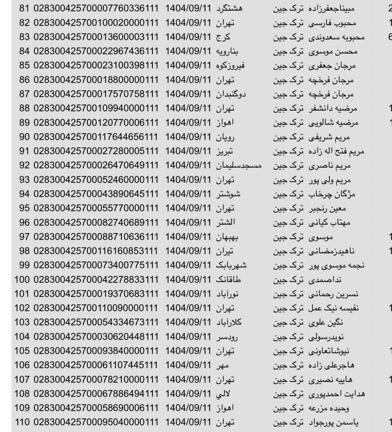 سفارشات ثبتی تا ۳ فروردین