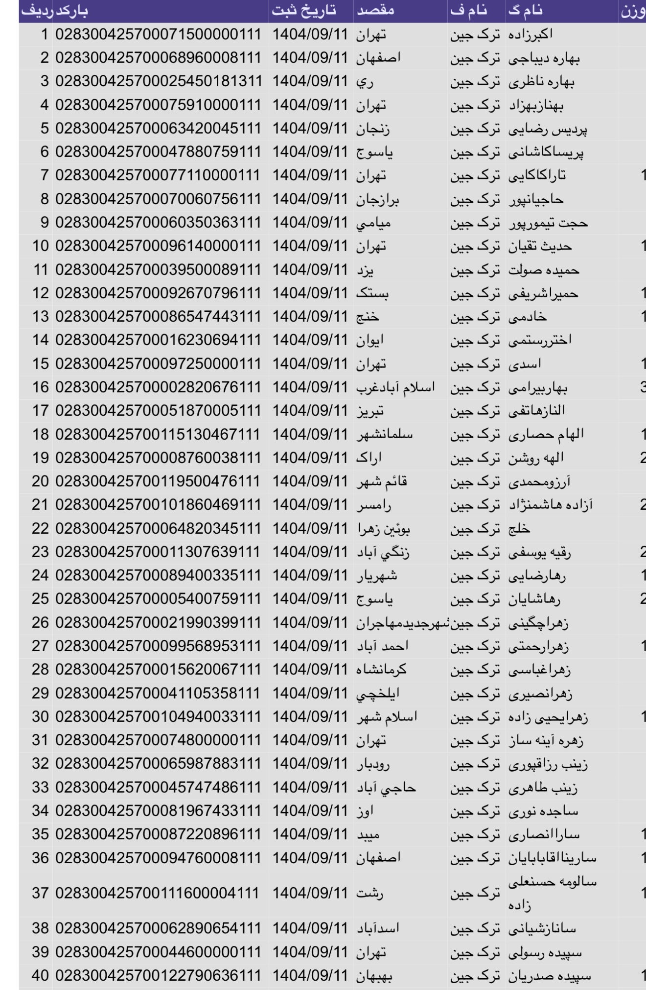 لیست ارسالی های پست