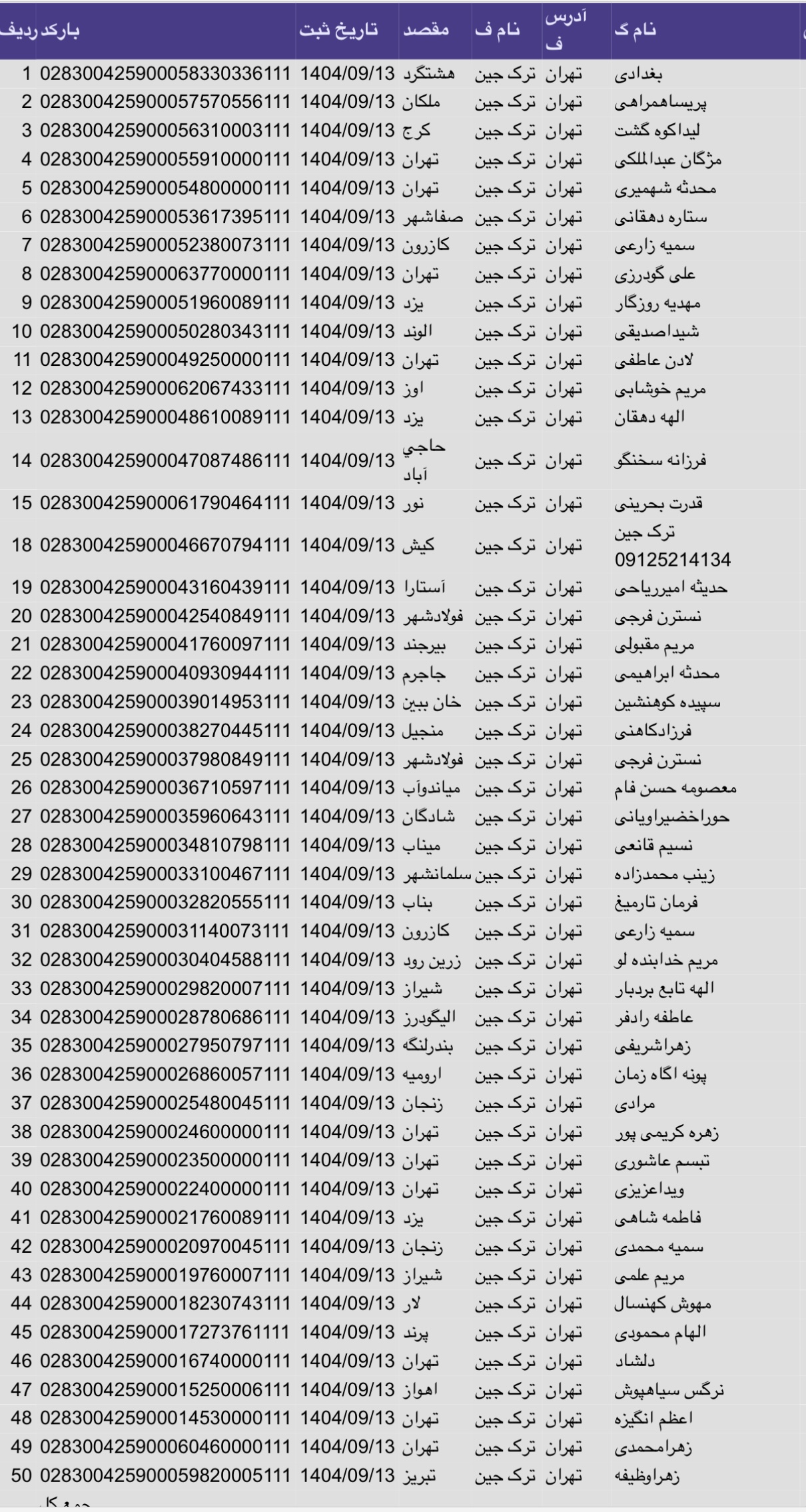 سفارشات ثبتی تا ۱۳ اردیبهشت