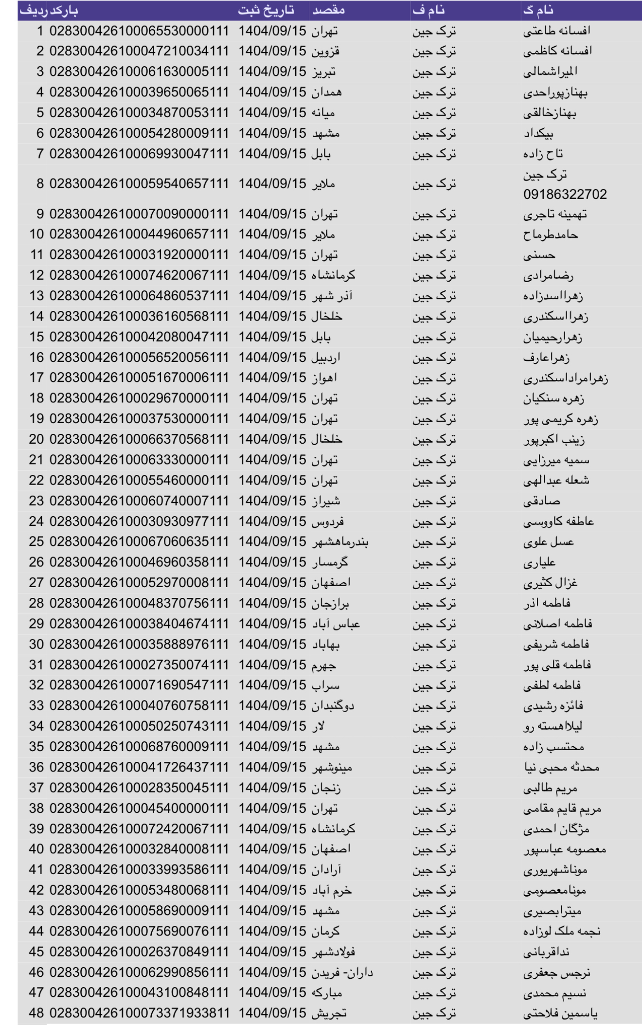 سفارشات ثبتی تا ۲۴ اردیبهشت