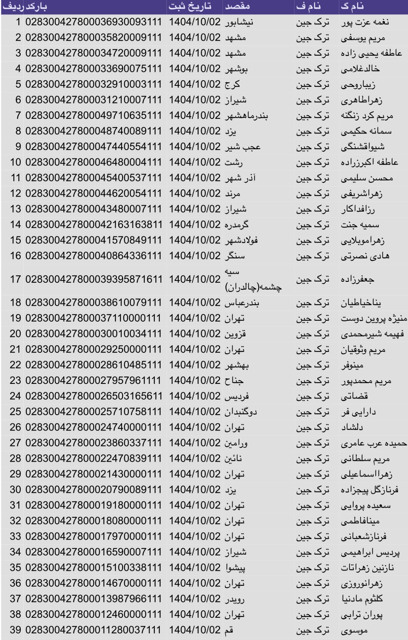 سفارشات ثبتی تا ۲۴ اردیبهشت
