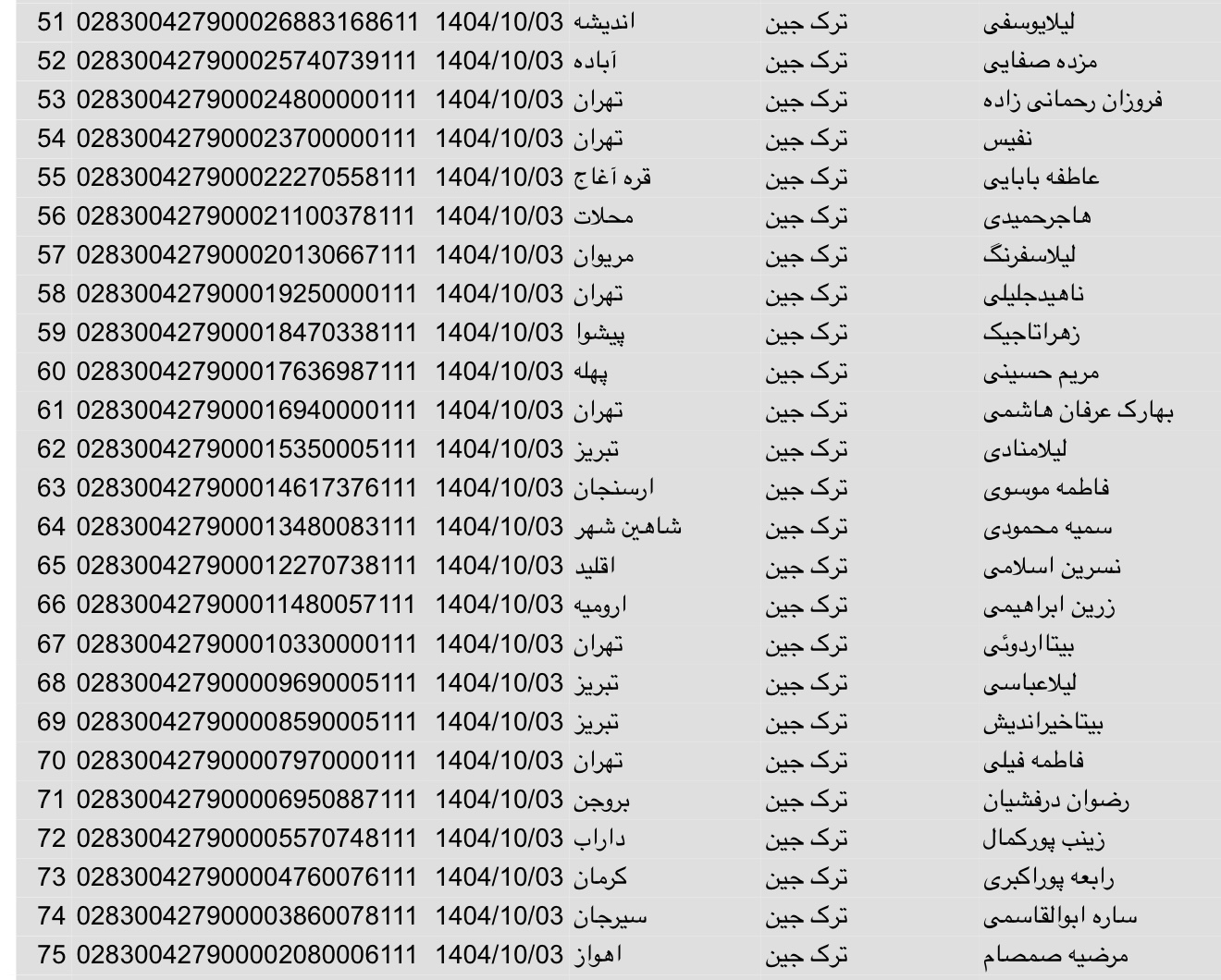 سفارشات ثبتی تا ۲۴ اردیبهشت