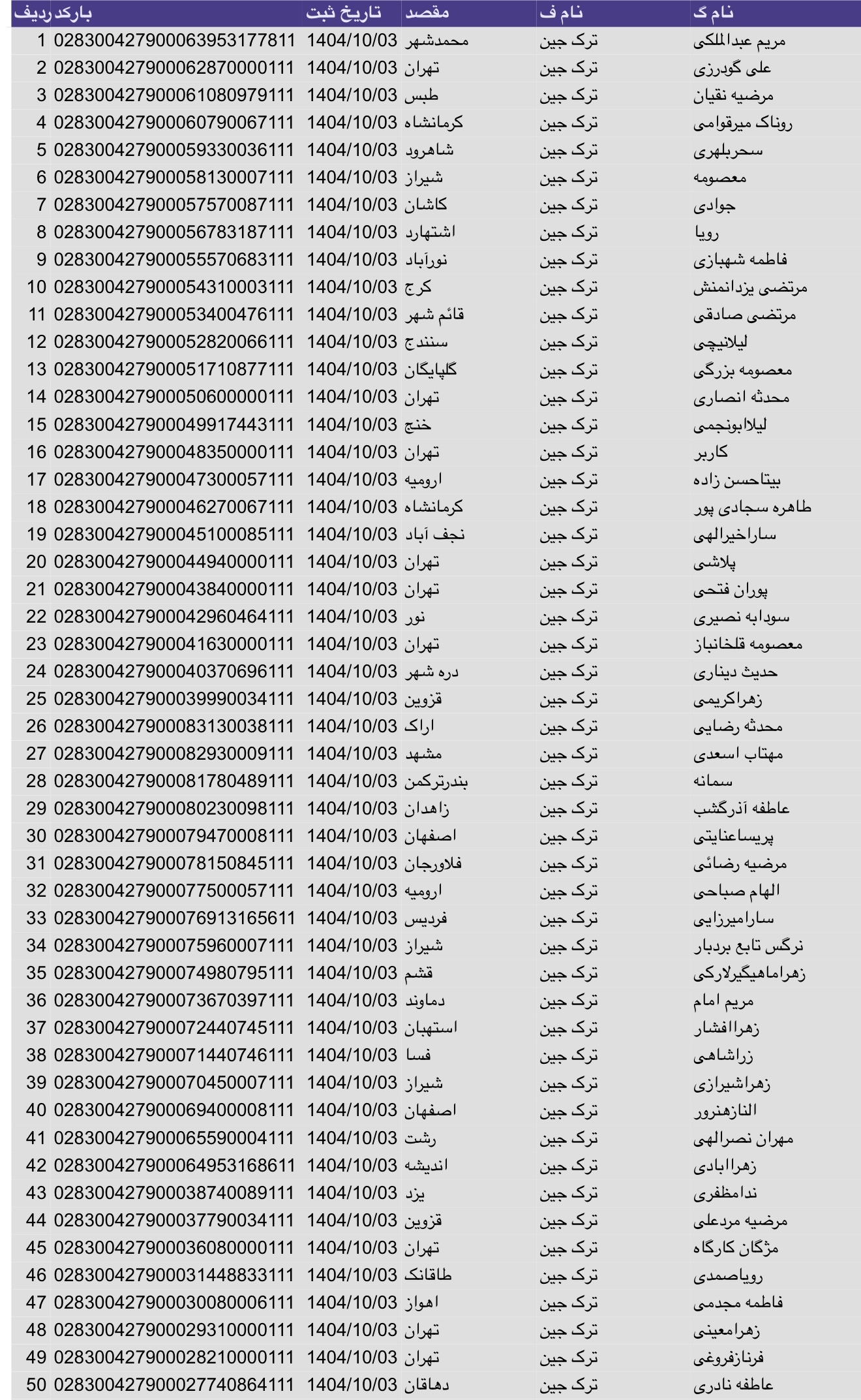 سفارشات ثبتی تا ۱۳ اردیبهشت