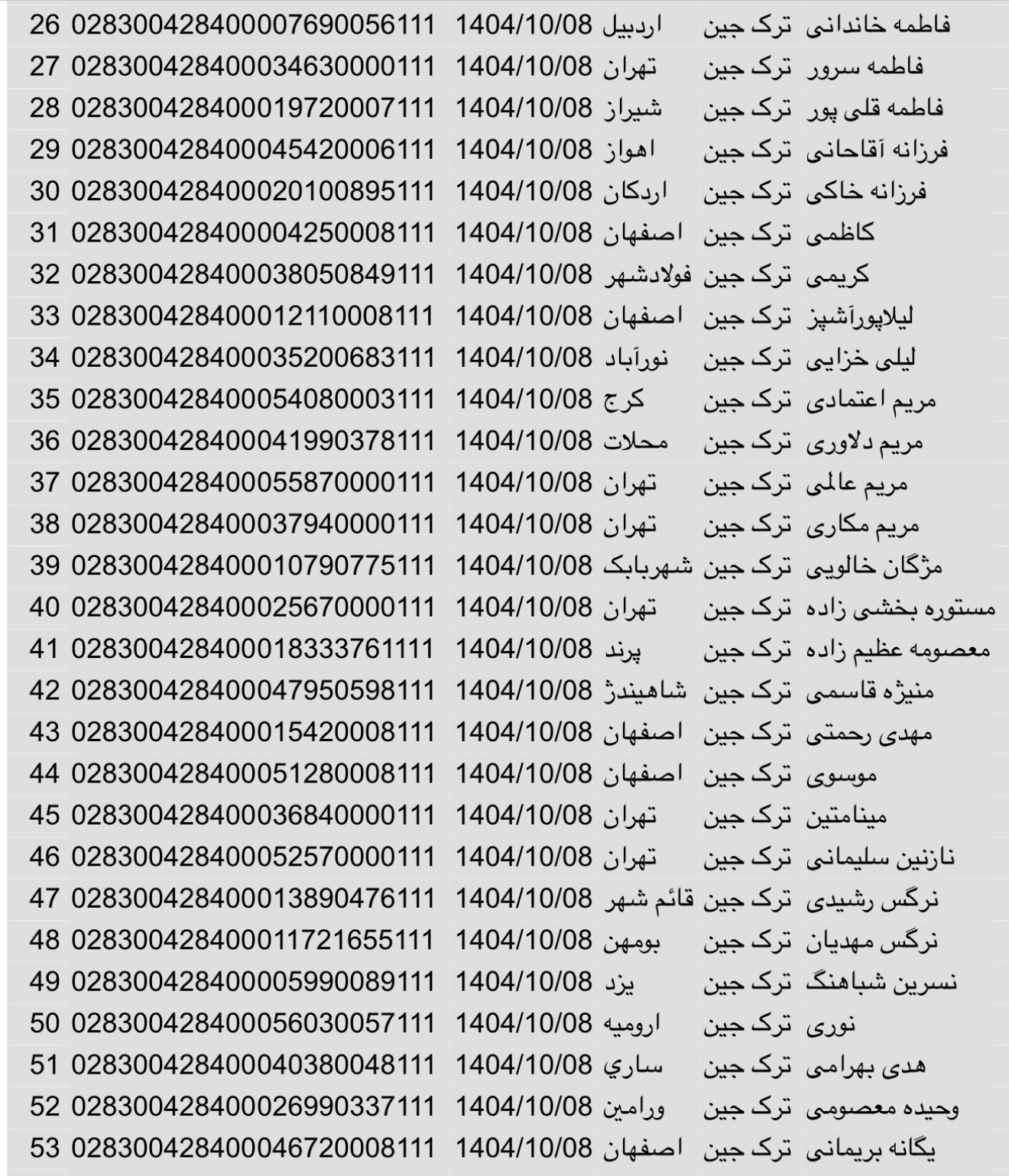 سفارشات ثبتی تا ۳ فروردین