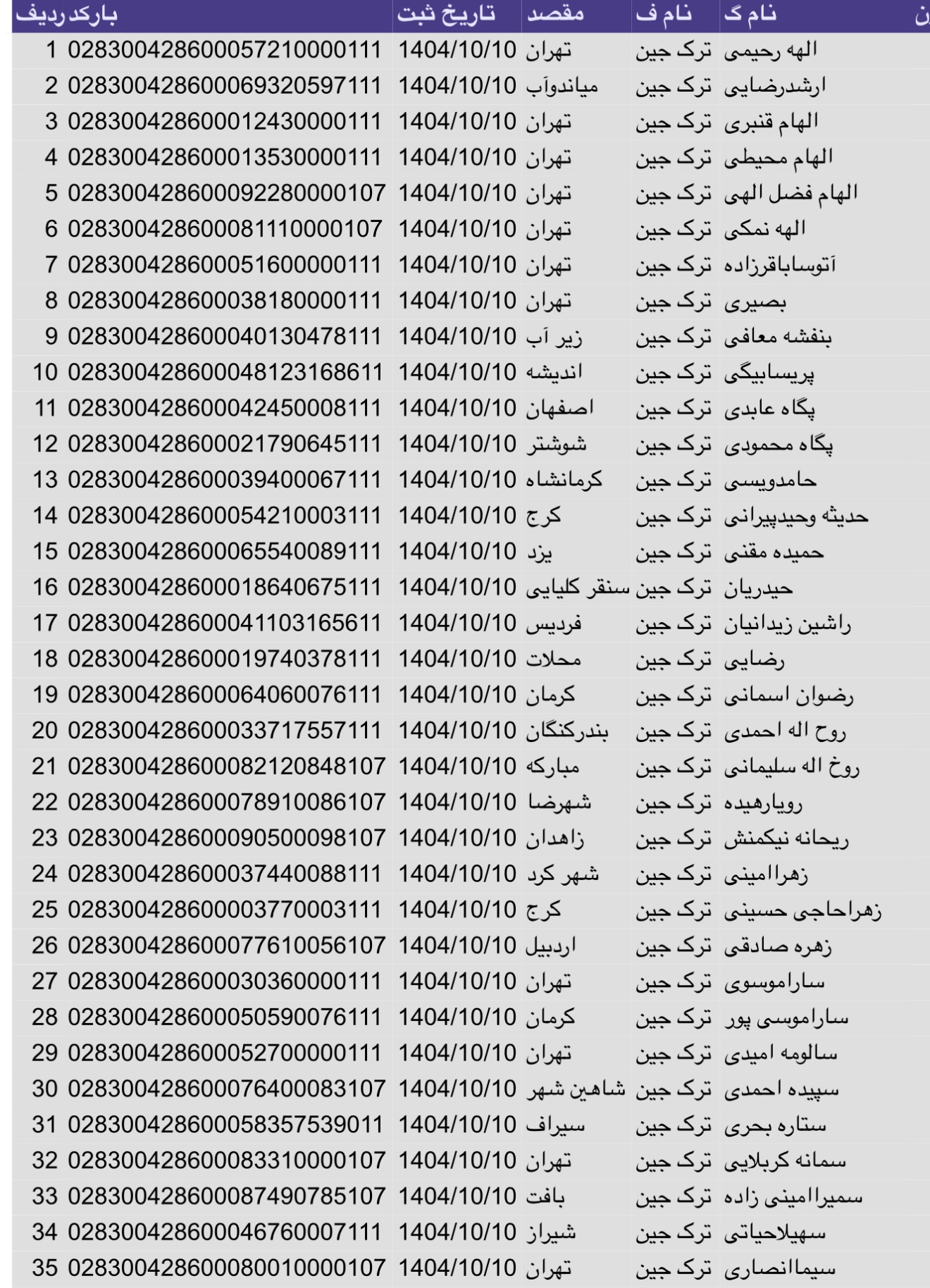 سفارشات ثبتی تا ۱۳ اردیبهشت