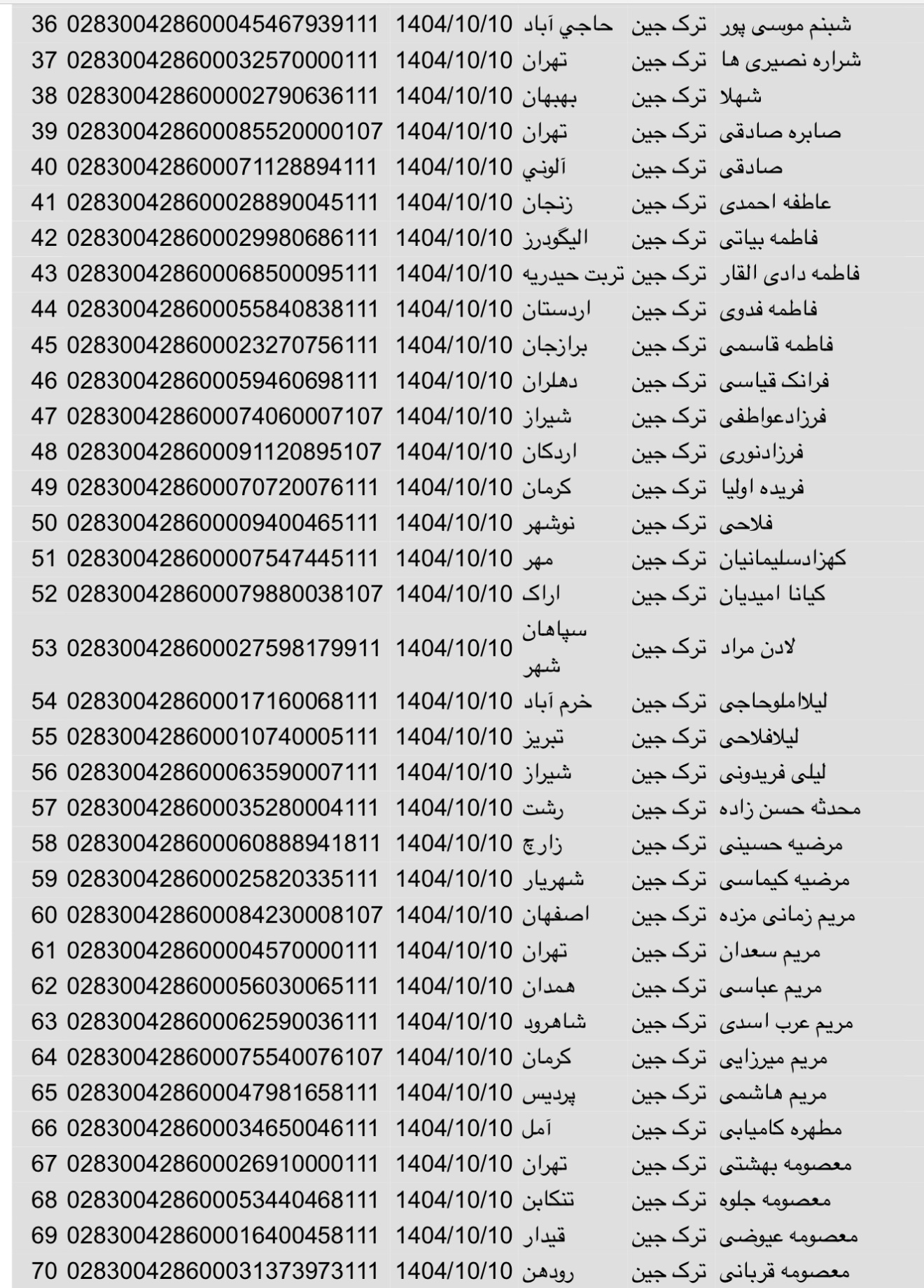 سفارشات ثبتی تا ۱۸ اسفند(سری دوم)