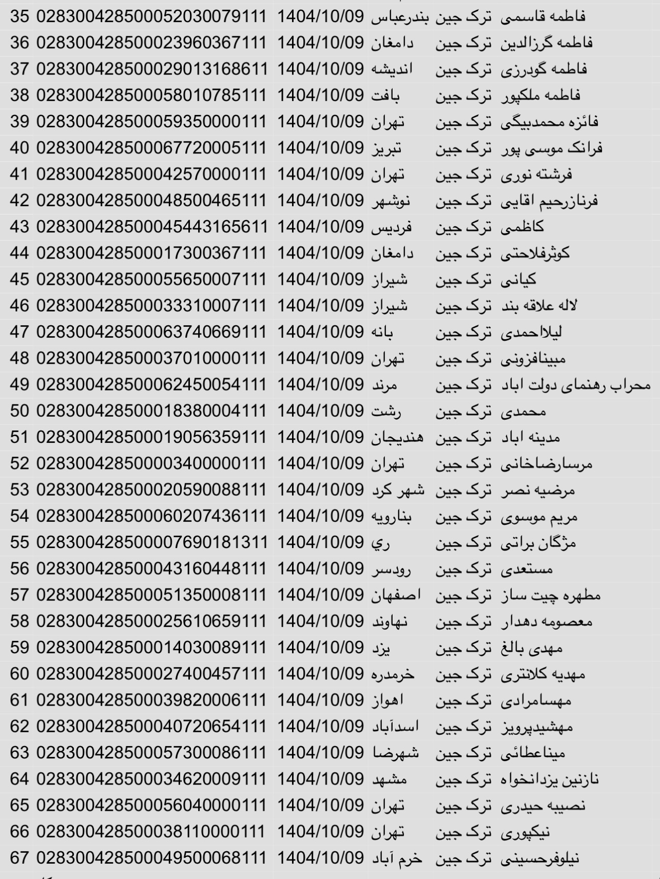 سفارشات ثبتی تا ۲۴ اردیبهشت