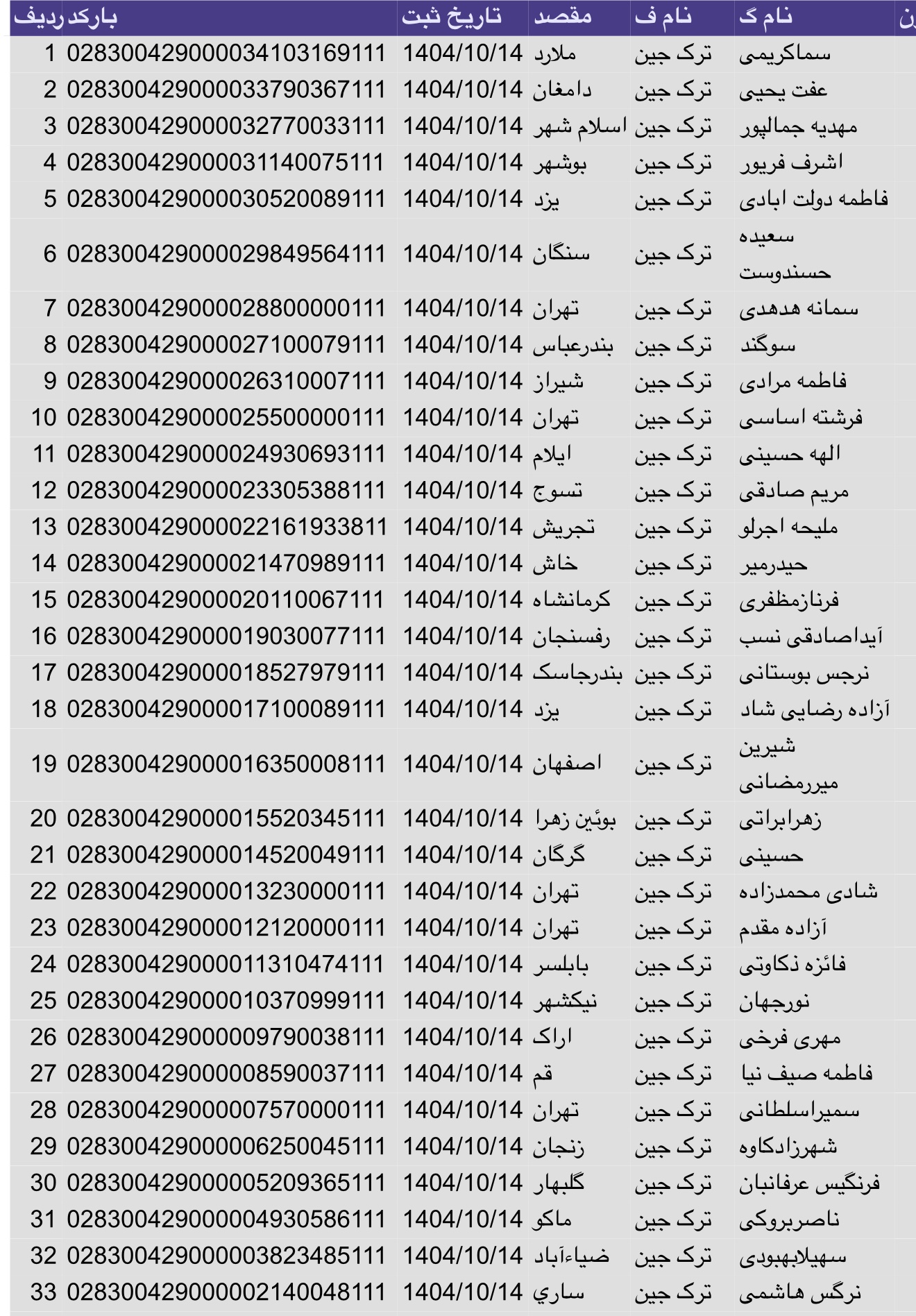 سفارشات ثبتی تا ۱۳ اردیبهشت