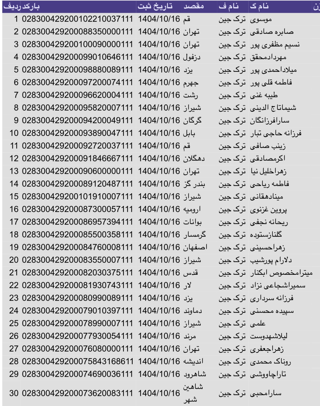 سفارشات ثبتی تا ۲۴ اردیبهشت