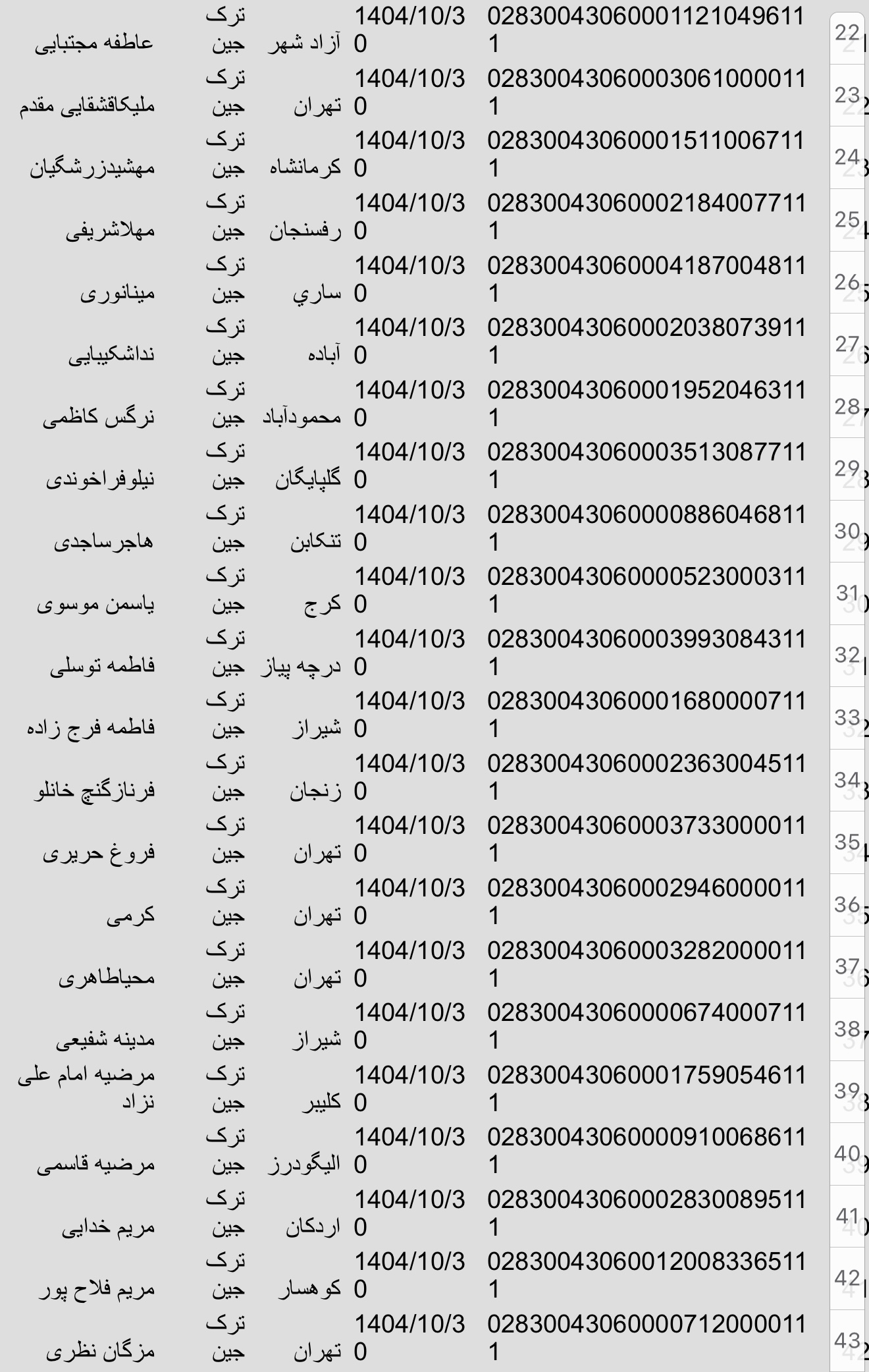 سفارشات ثبتی تا ۲۳ فروردین