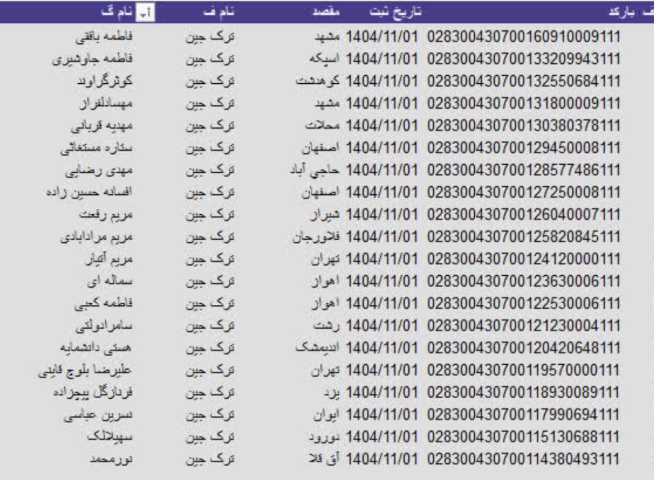 سفارشات ثبتی تا ۲۵ شهریور