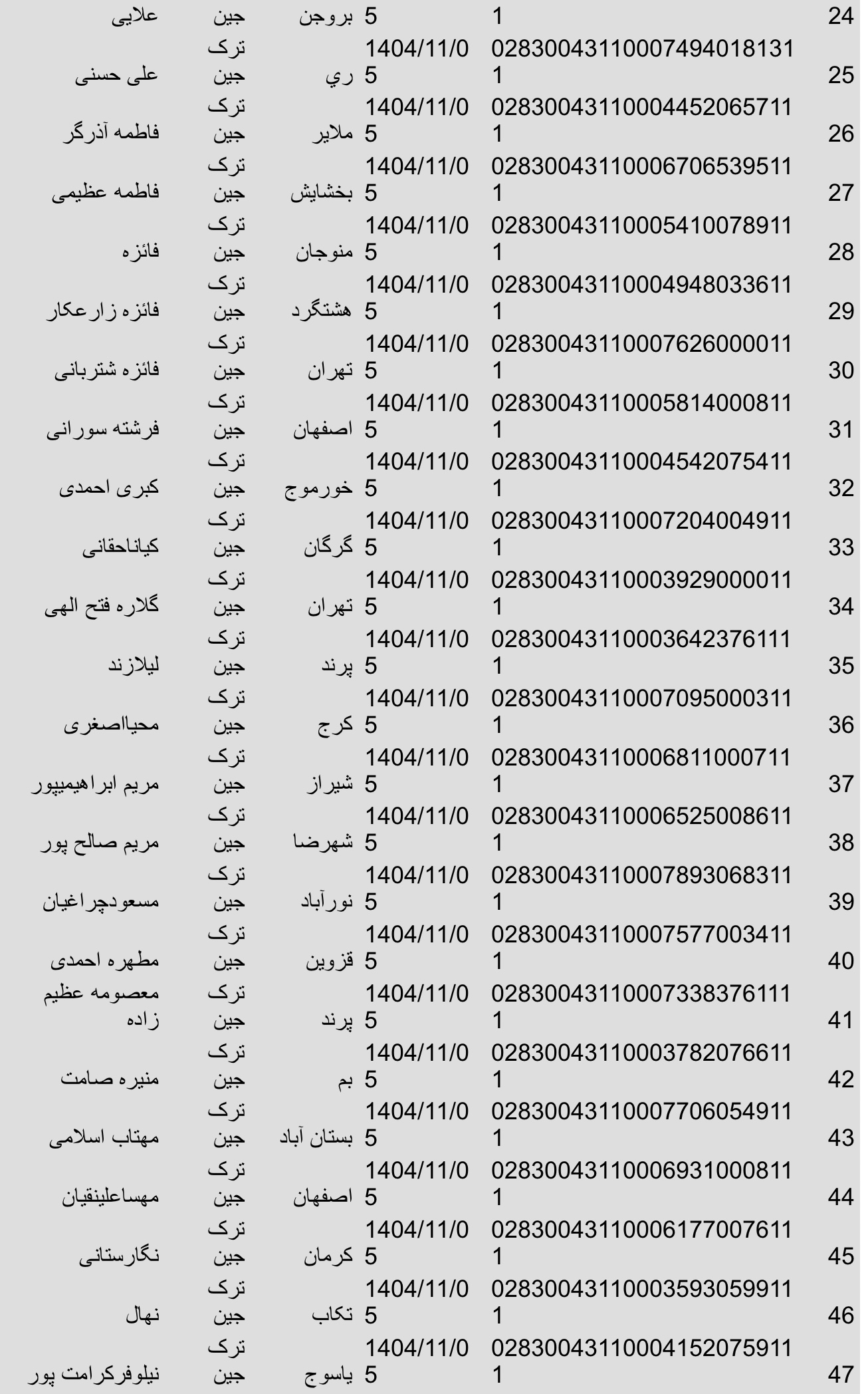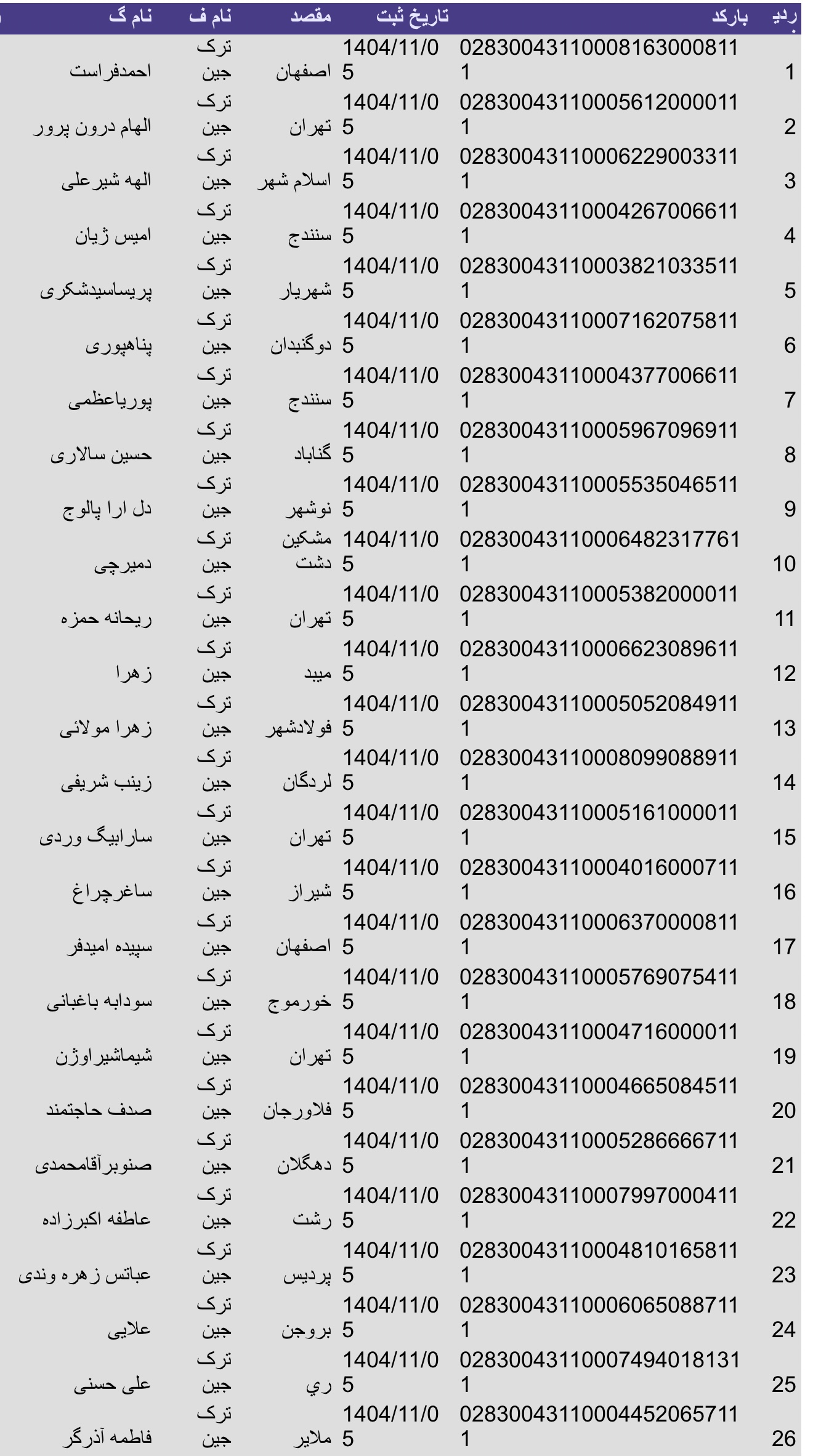 سفارشات ثبتی تا ۲۴ اردیبهشت