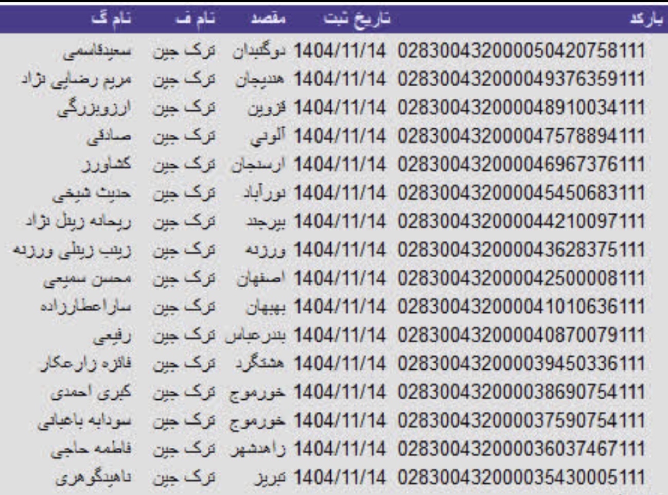 سفارشات ثبتی تا ۱۶ اسفند