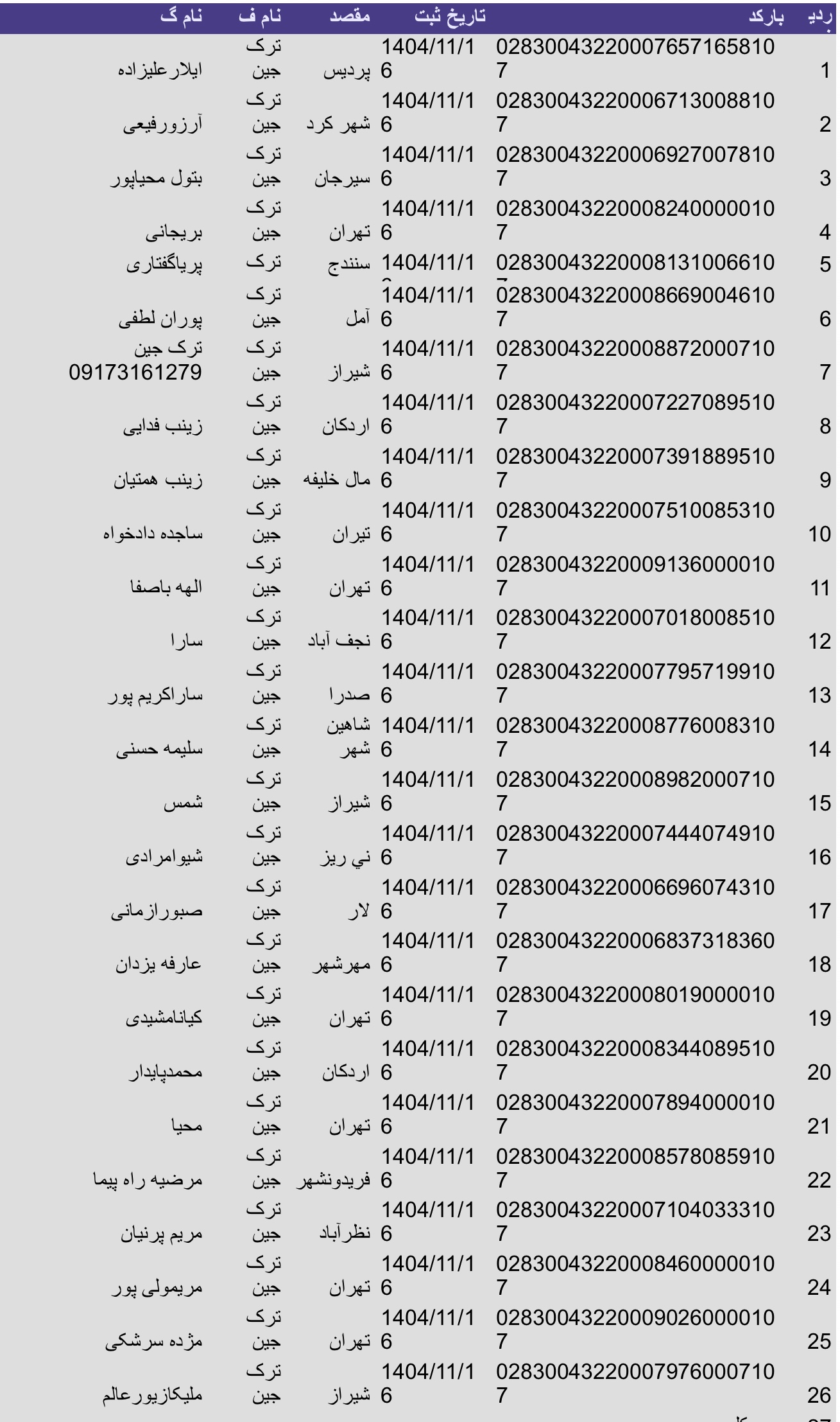 لیست ارسالی های پست