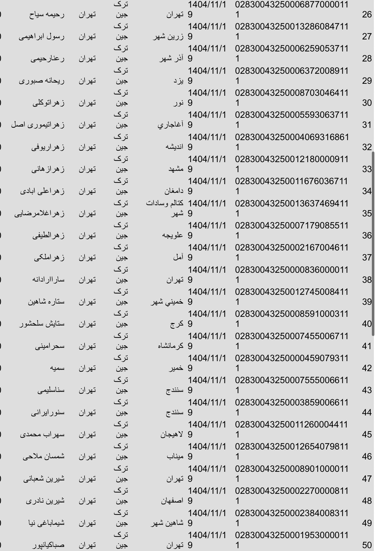 سفارشات ثبتی تا ۳ آبان