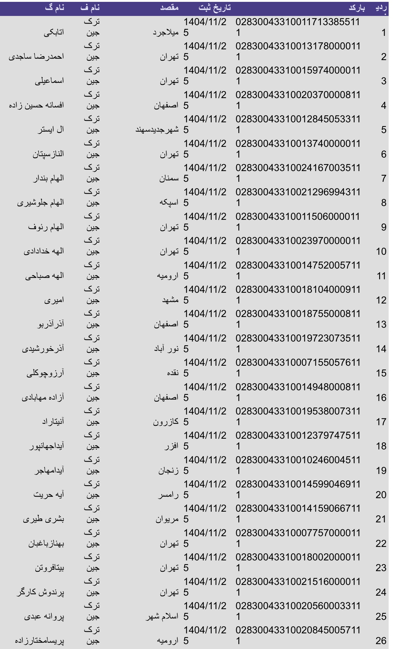 سفارشات ثبتی تا ۱۳ اردیبهشت