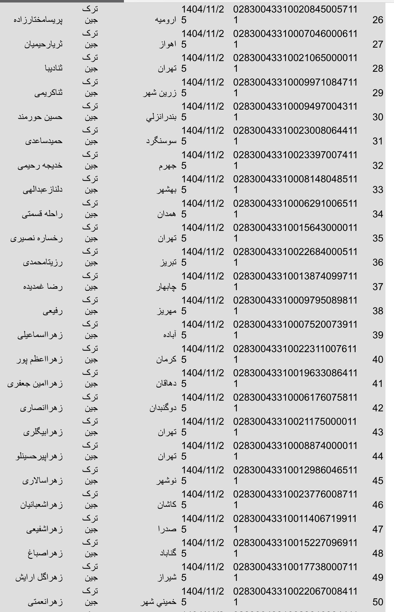 سفارشات ثبتی تا ۲۴ اردیبهشت