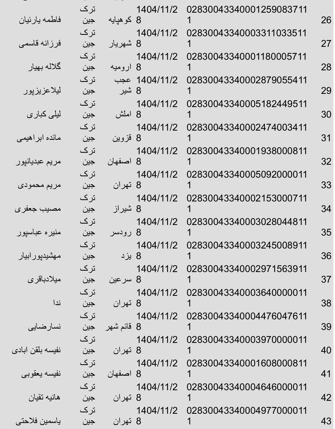 سفارشات ثبتی تا ۱۸ اسفند(سری دوم)