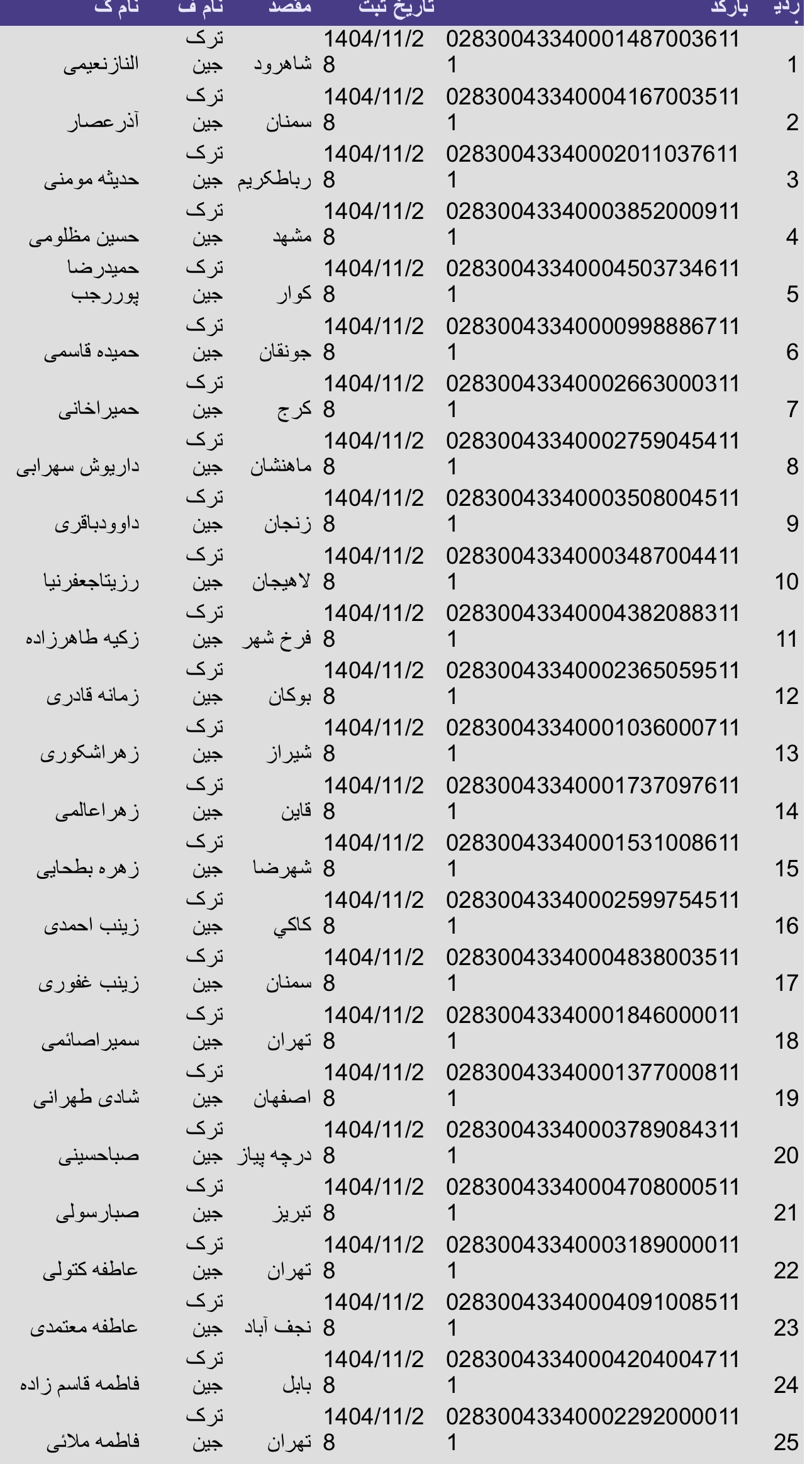 سفارشات ثبتی تا ۲۵ اسفند