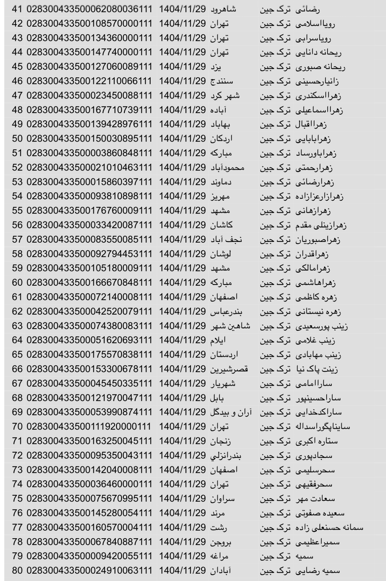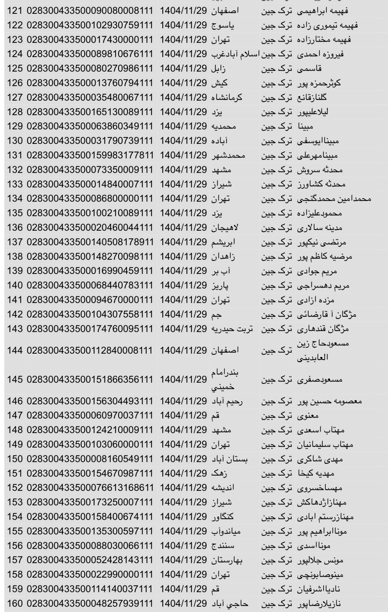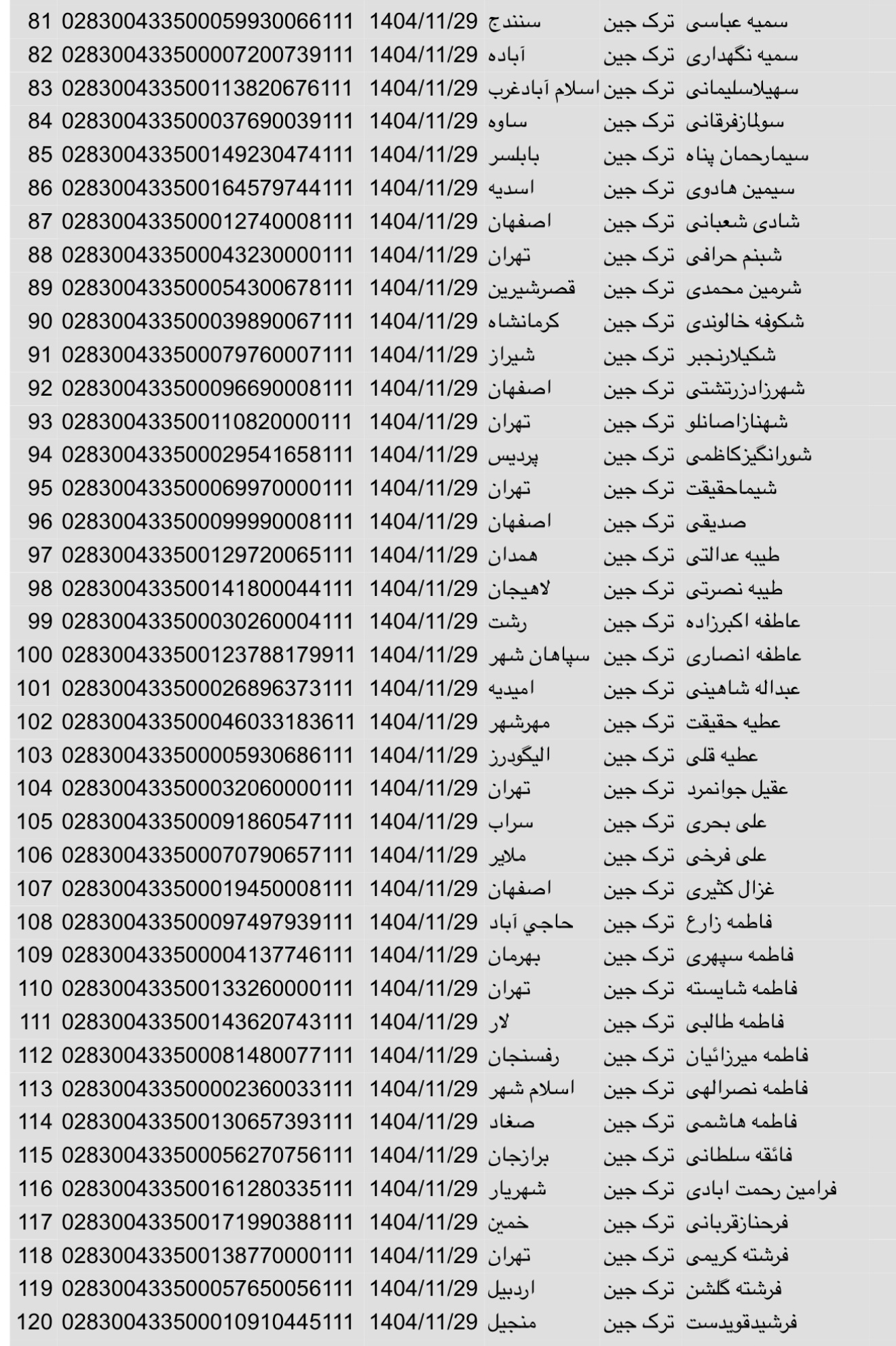سفارشات ثبتی تا ۳ فروردین