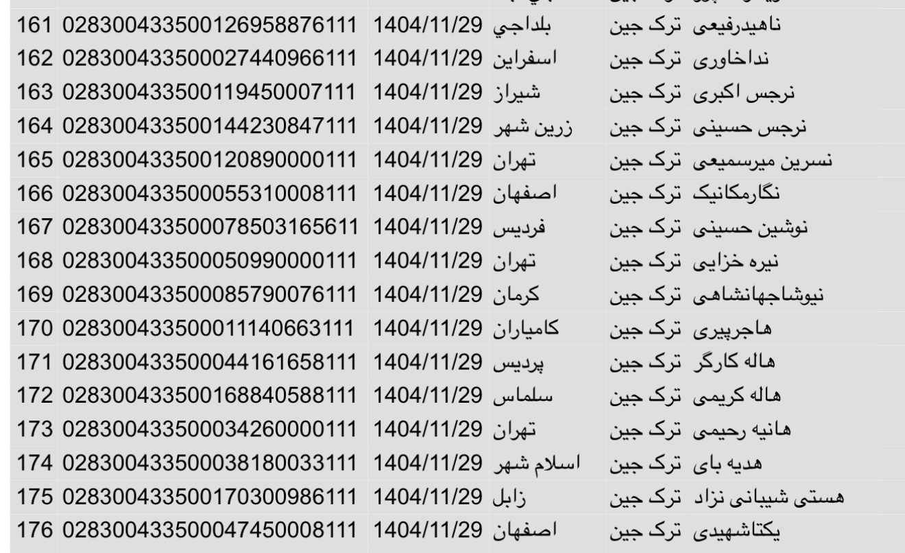 سفارشات ثبتی تا ۲۵ فروردین