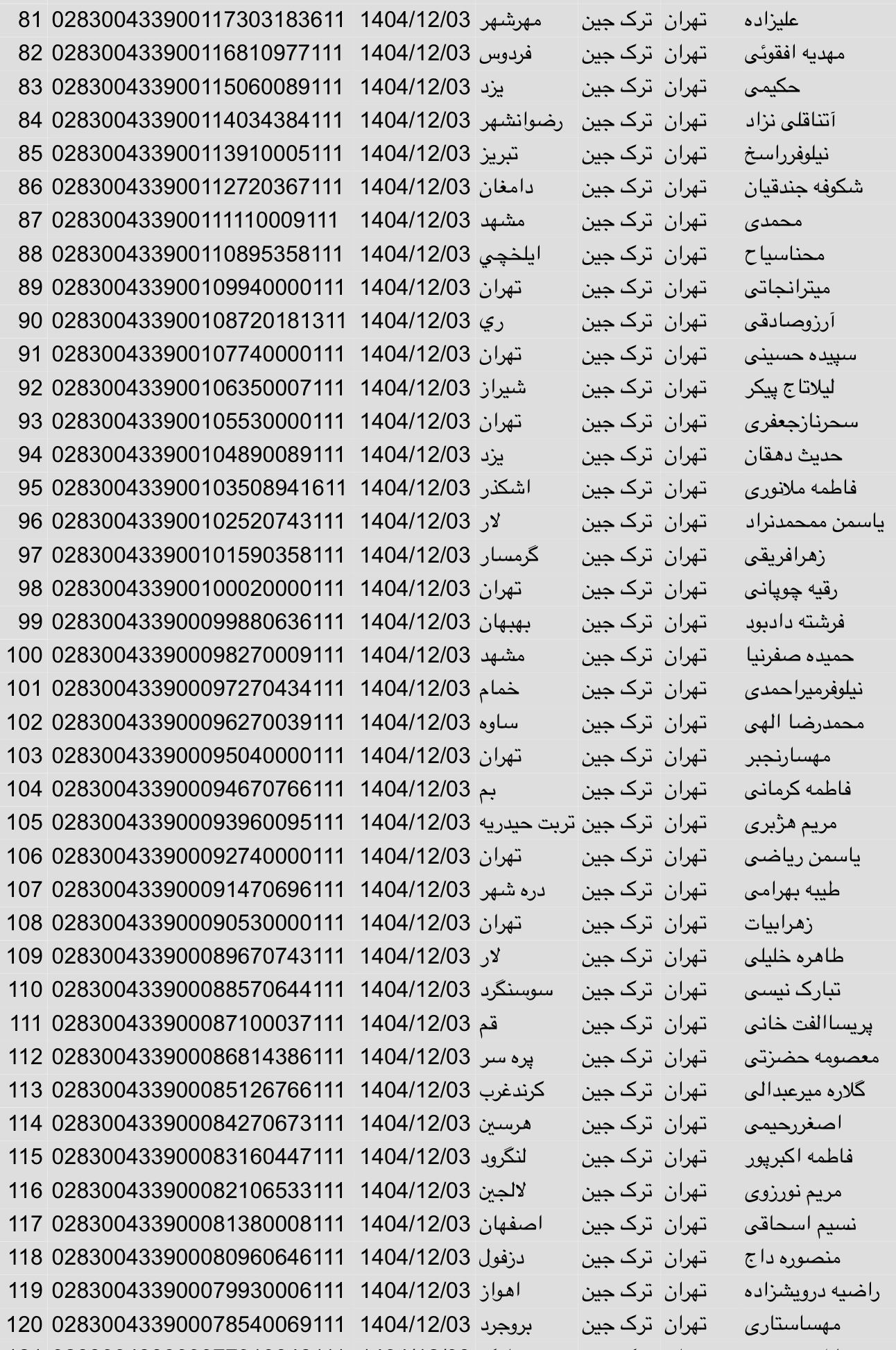 سفارشات ثبتی تا ۱۸ اسفند(سری دوم)