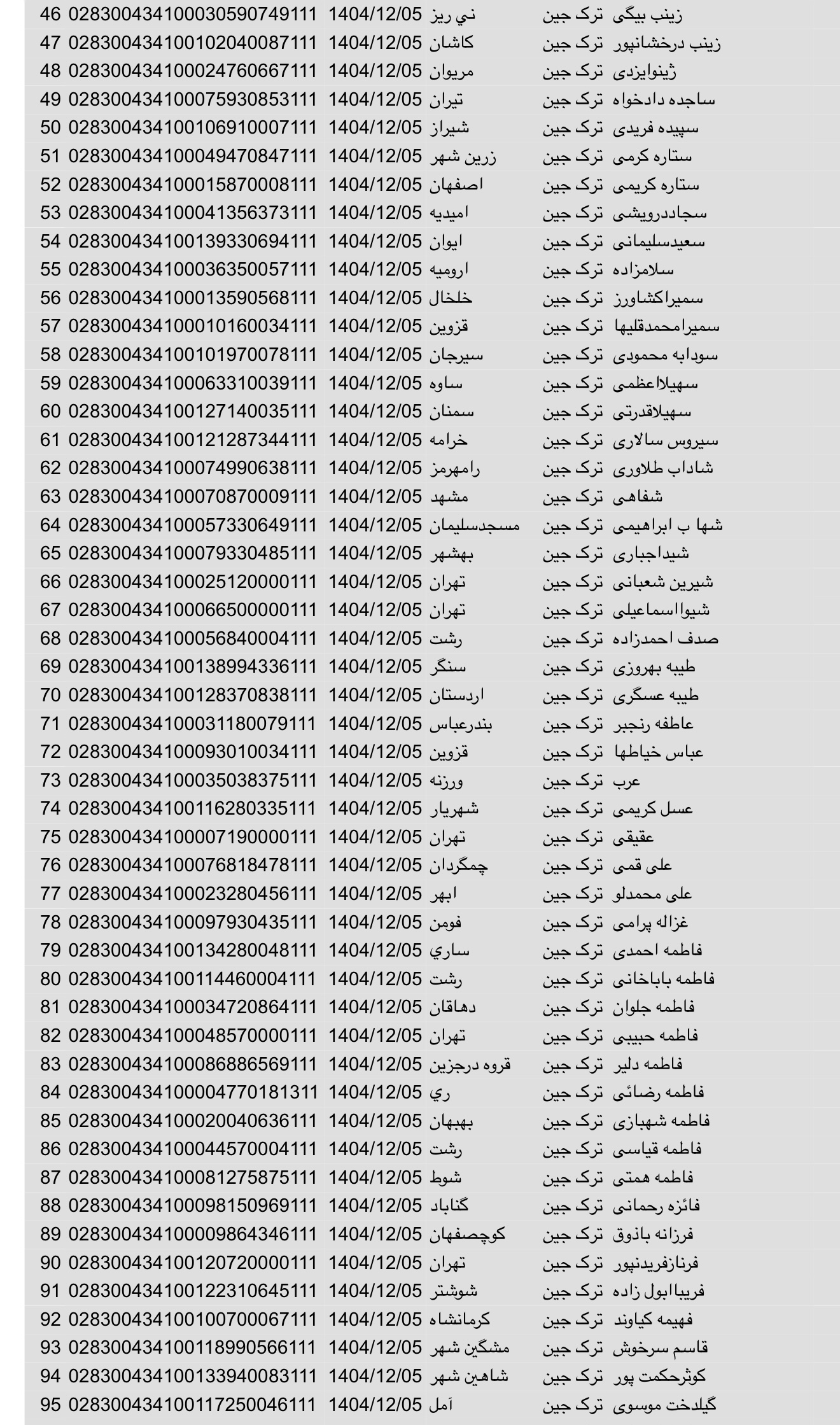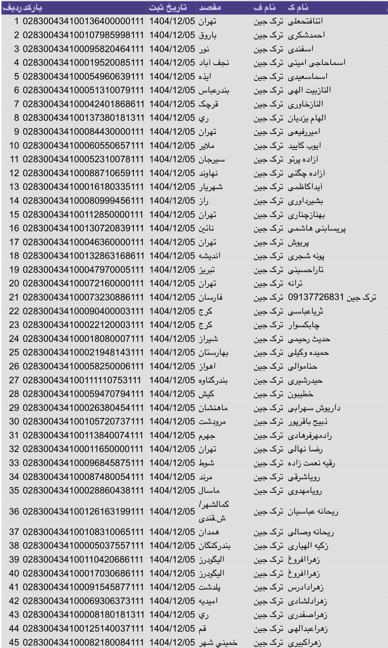 سفارشات ثبتی تا ۱۸ اسفند(سری دوم)