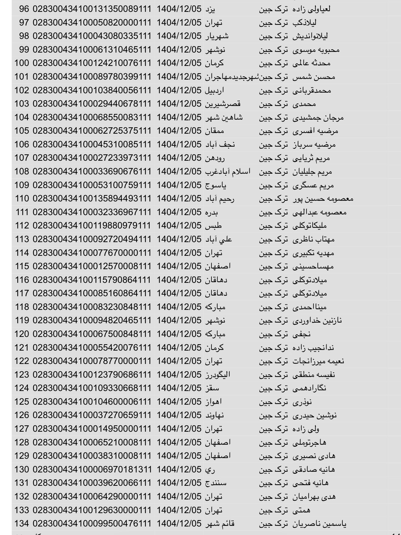 سفارشات ثبتی تا ۱۳ اردیبهشت